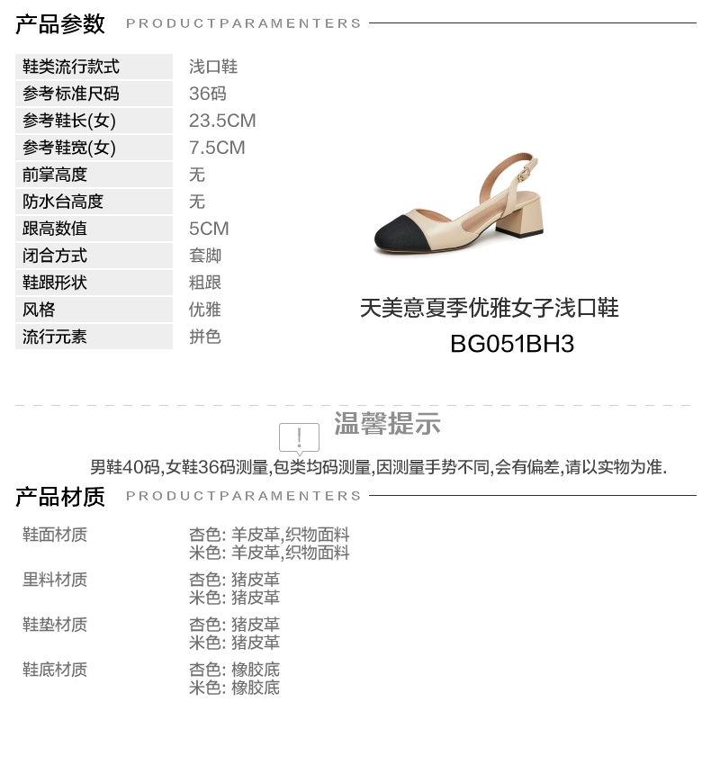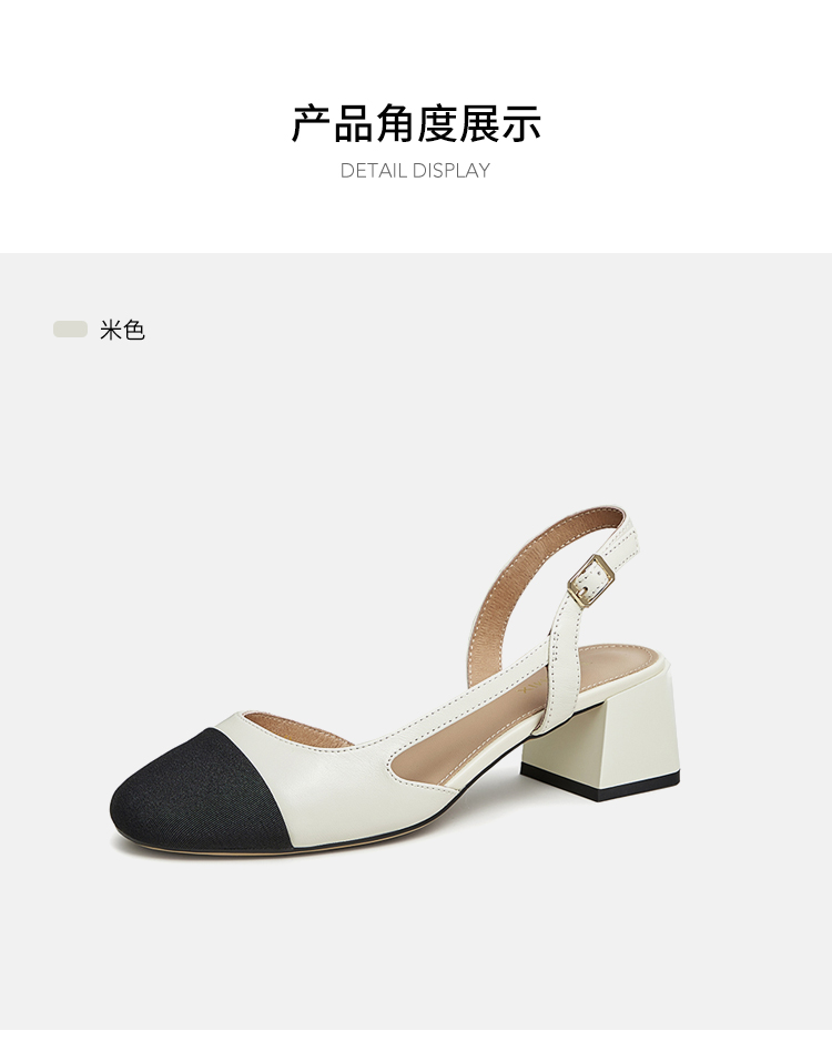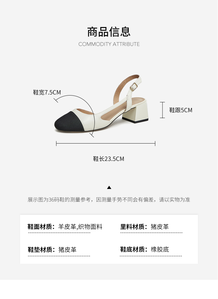 | 执行标准:皮凉鞋GB/T22756-2017 | 跟高范围:中跟鞋(3-5CM) | 鞋面图案:拼色 | 鞋跟形状:粗跟 | 流行元素:拼色 |