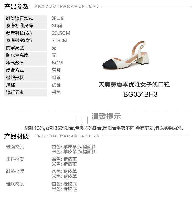 | 参考鞋长(女):23.5CM | 参考鞋宽(女):7.5CM | 风格:优雅 | 色系:米色 | 参考标准尺码:36码 |