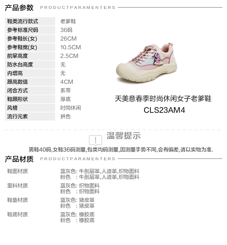 | 鞋垫材质:猪皮革 | 前掌高度:2.5CM | 皮质特征:二层皮 | 鞋类流行款式:老爹鞋 |