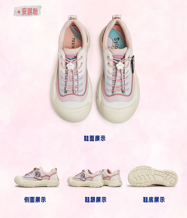 | 闭合方式:系带 | 风格:时尚休闲 | 跟高数值:4CM | 色系:粉色 | 配跟:无 |