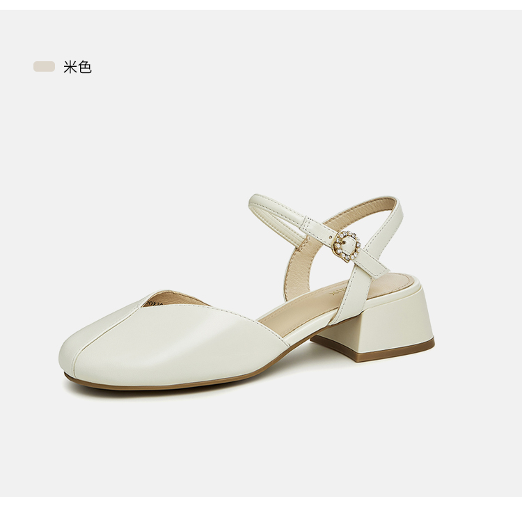 | 执行标准:皮凉鞋GB/T22756-2017 | 跟高范围:中跟鞋(3-5CM) | 鞋面图案:纯色 | 鞋跟形状:方跟 | 流行元素:纯色 |
