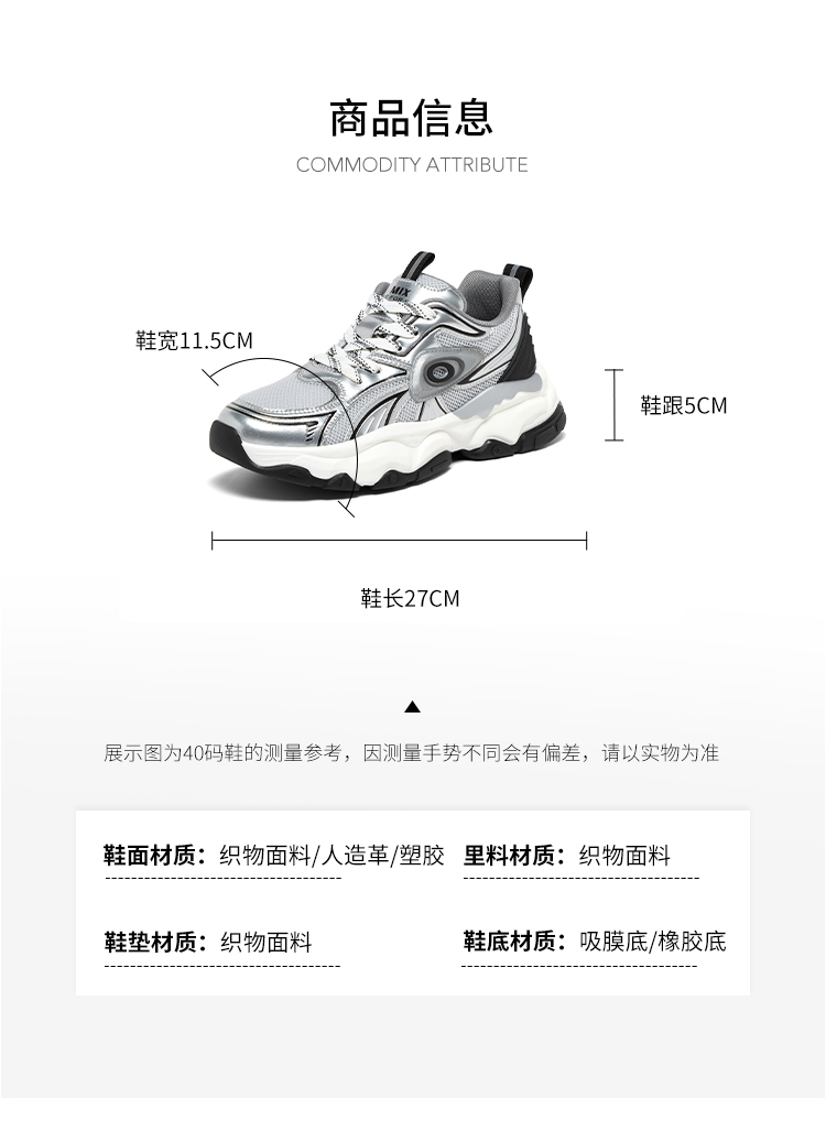 | 皮质特征:合成革 | 鞋类流行款式:老爹鞋 |