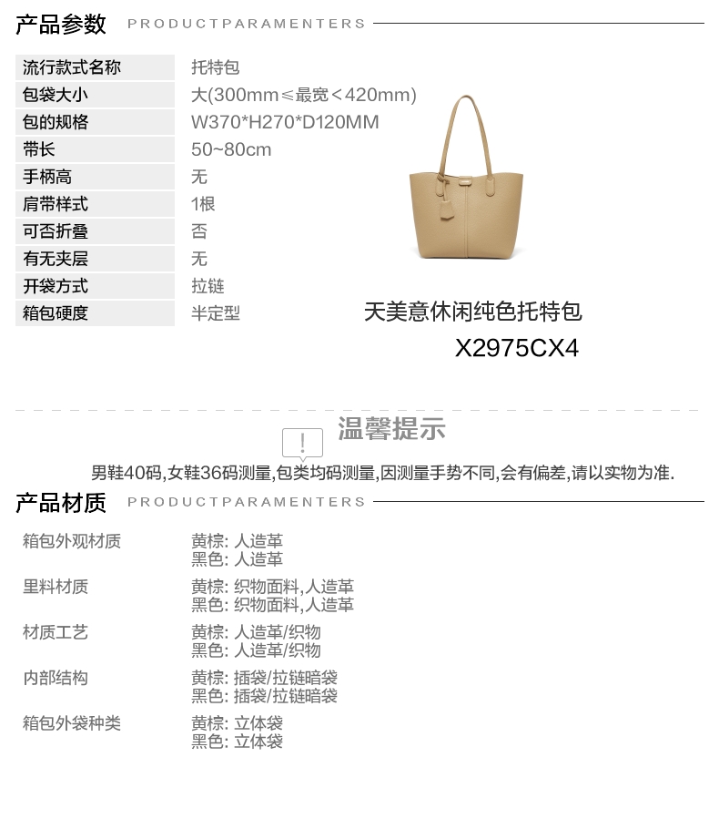 | 款式季节:秋季 | 材质工艺:人造革/织物 | 渠道划分:线下同步 | 皮质特征:人造革 | 箱包外观材质:人造革 |