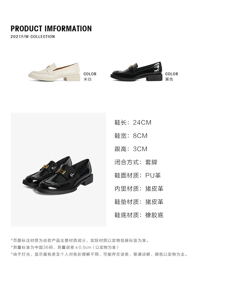 | 配跟:无 | 上市时间:2021年秋季 | 鞋类流行款式:乐福鞋 | 鞋头款式:圆头 | 鞋面图案:纯色 |