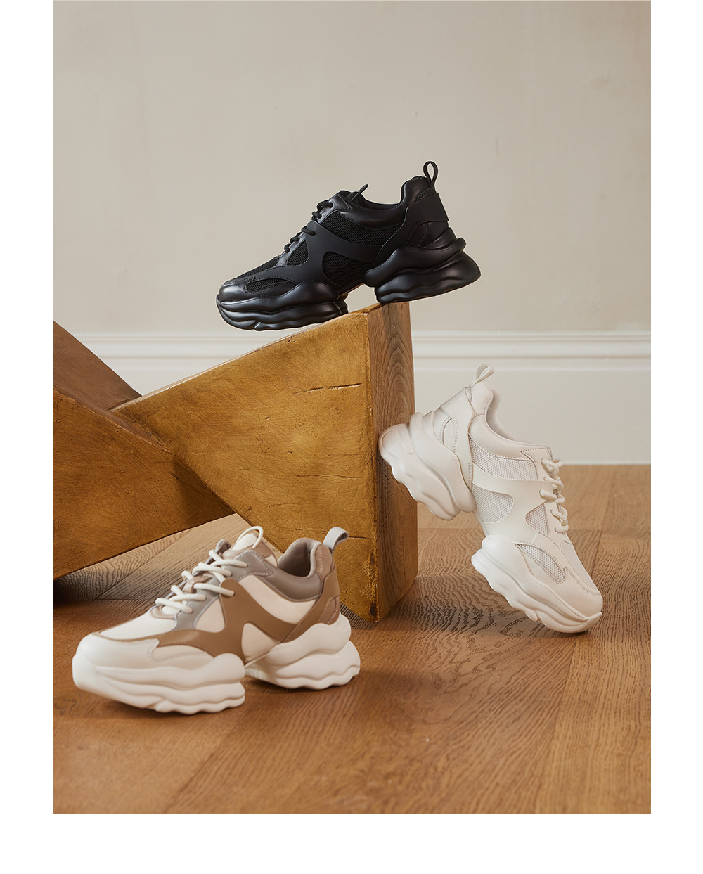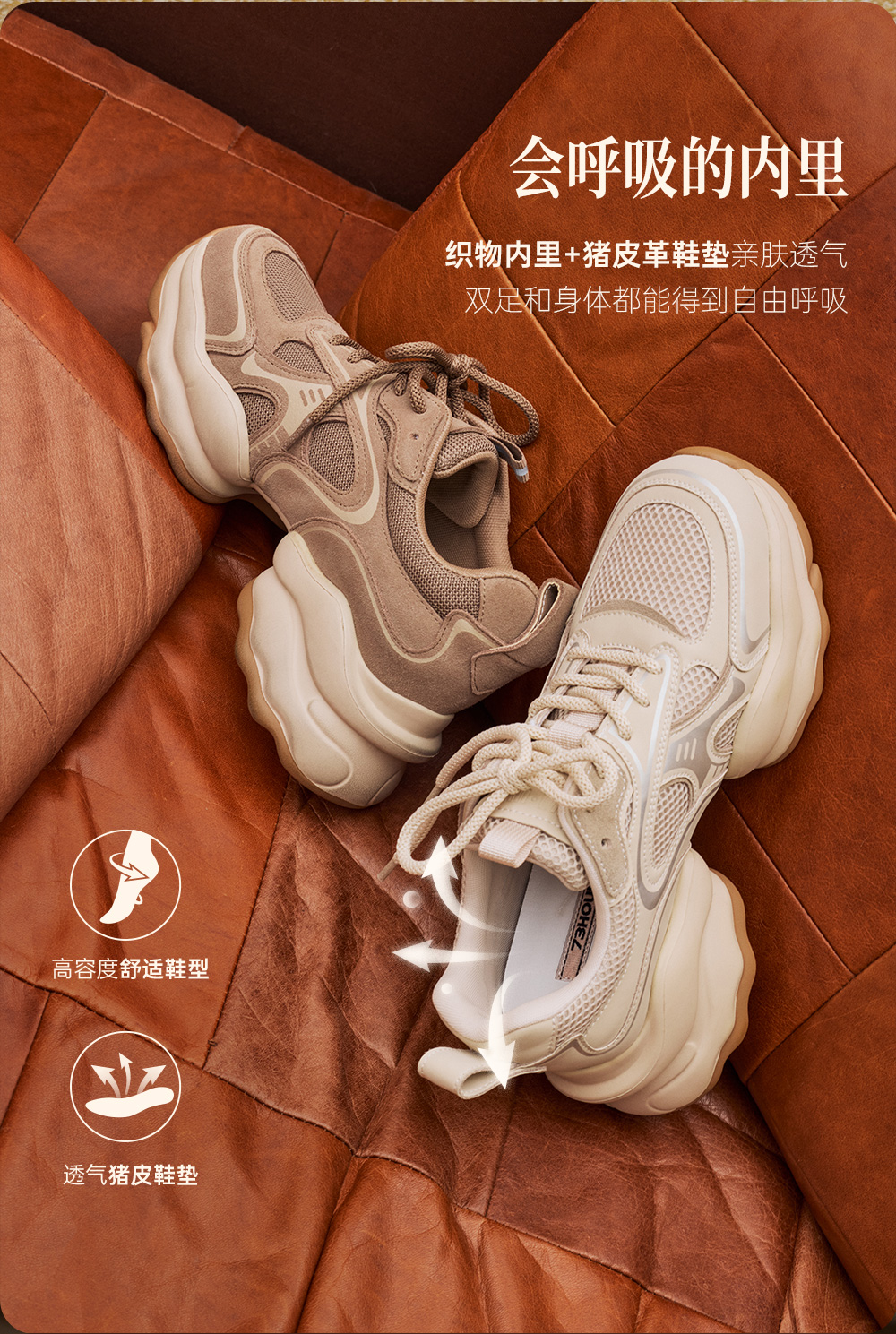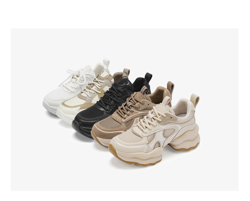73hours女鞋椰椰奶冻拼色厚底圆头系带老爹鞋