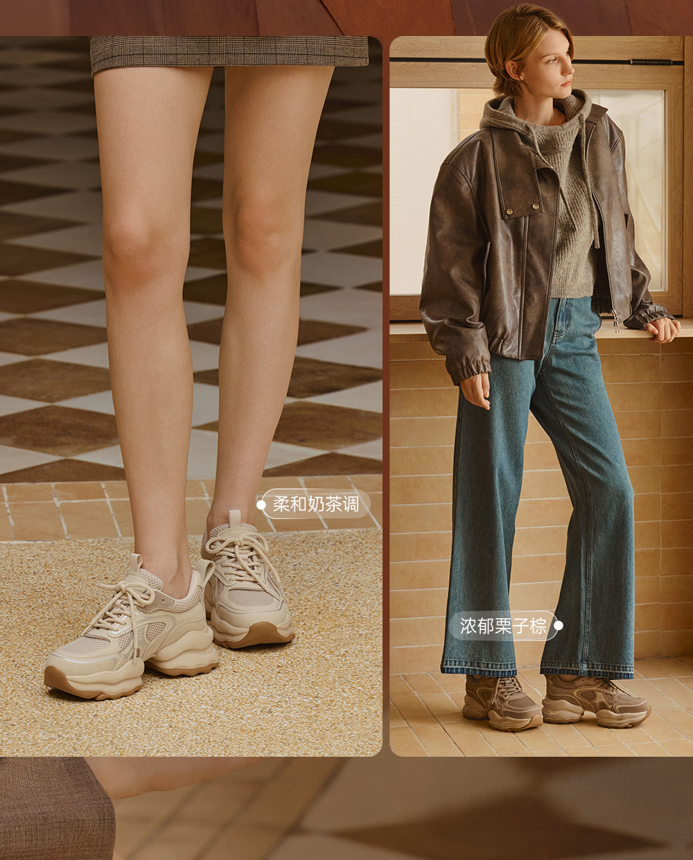 • 73hours女鞋椰椰奶冻拼色厚底圆头系带老爹鞋
