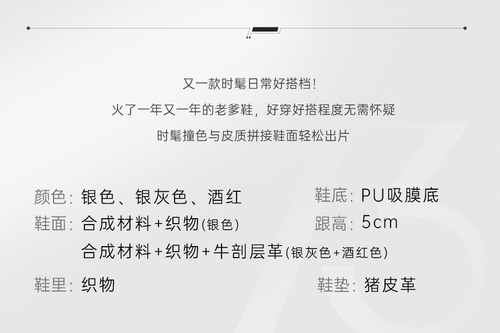 | 风格:休闲 | 年份:2024年 | 色系:银色 | 跟高数值:6CM | 性别:女子 |