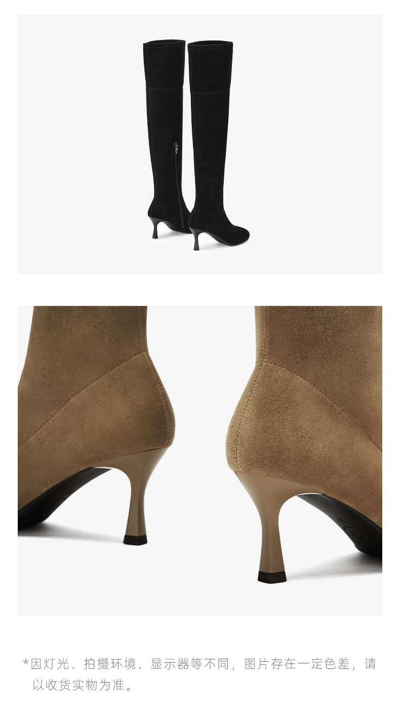 | 鞋头款式:尖头 | 鞋底材质:橡胶底 | 鞋面图案:纯色 | 靴筒内里材质:猪皮革 | 内增高:无 |