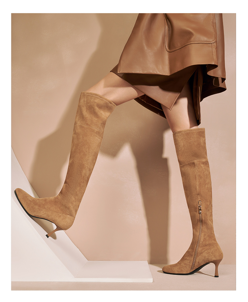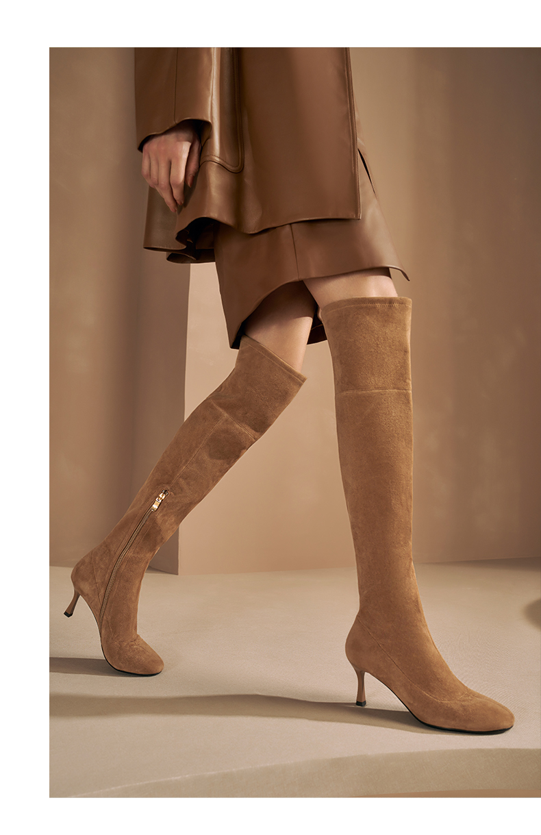 | 色系:棕色 | 跟高数值:7CM | 配跟:无 | 性别:女子 | 靴筒筒面材质:羊皮革 |