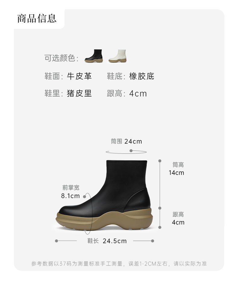| 鞋底材质:橡胶底 | 靴筒内里材质:猪皮革 | 内增高:无 | 鞋面材质:牛皮革 | 适用场合:日常休闲 |