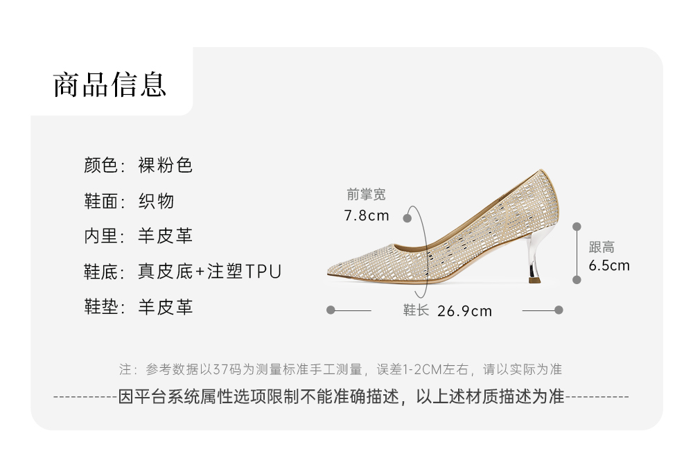 | 跟高数值:6.5CM | 配跟:无 | 性别:女子 | 里料材质:羊皮革 | 上市时间:2024年秋季 |