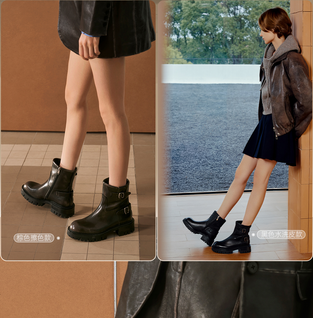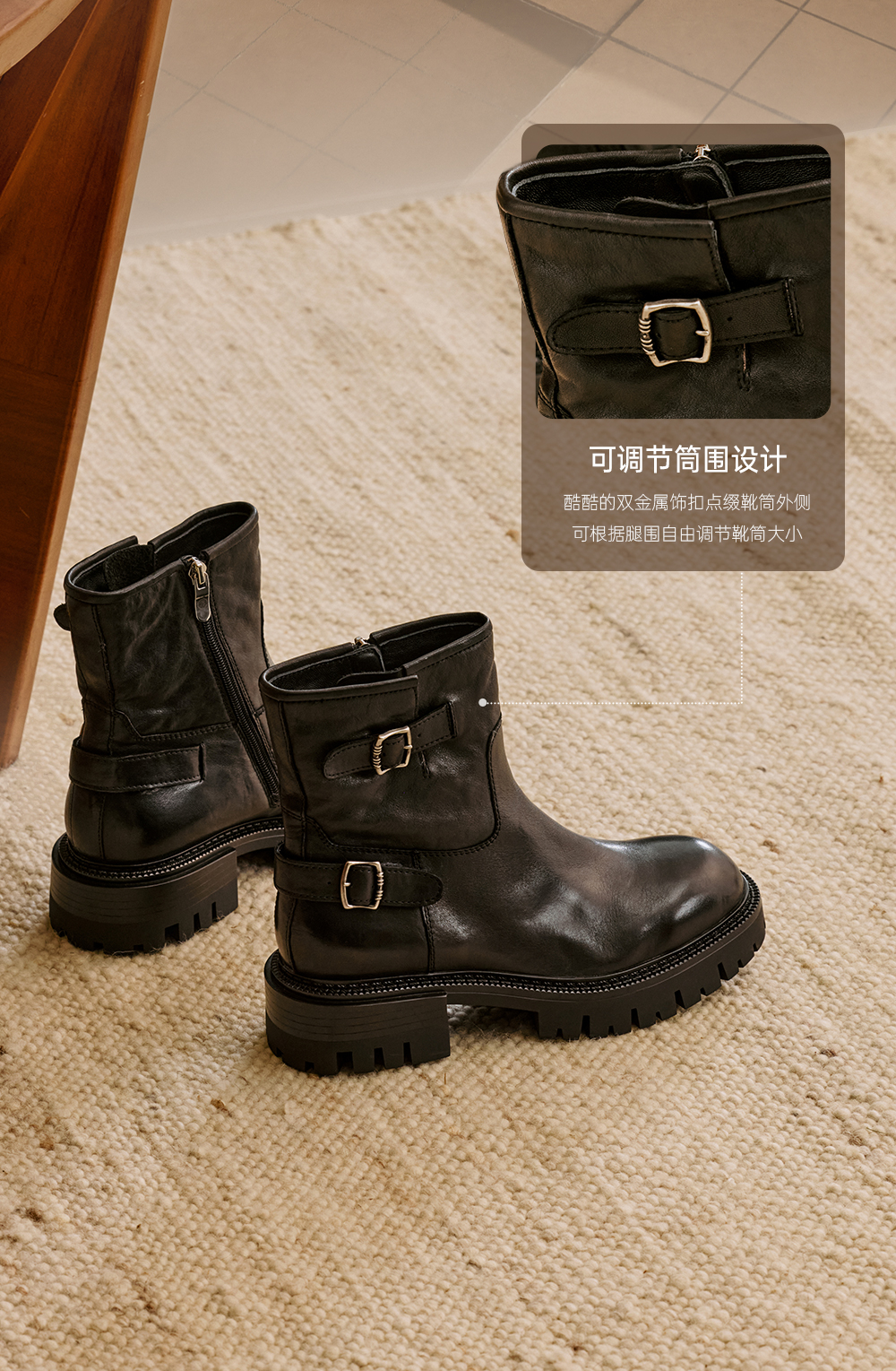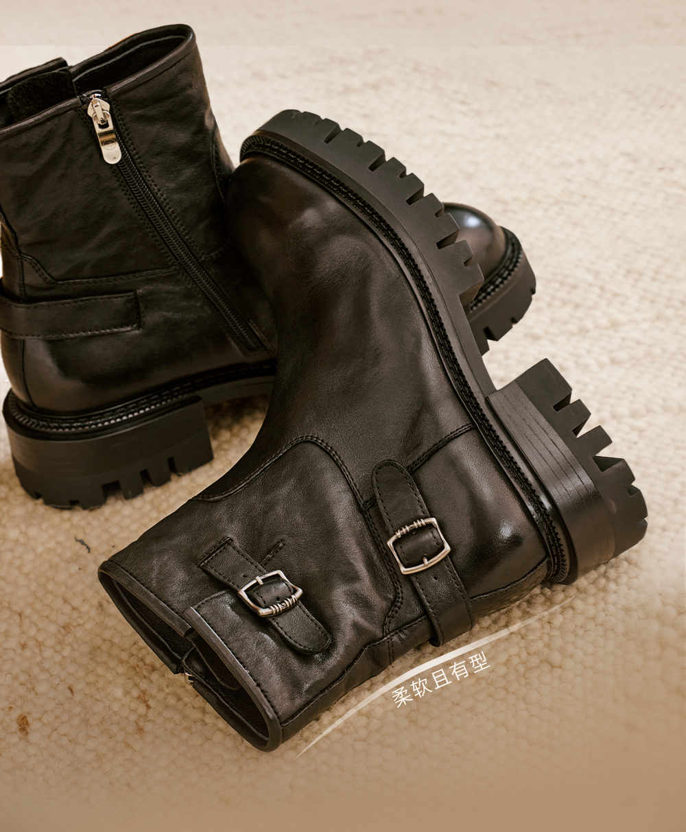 | 鞋跟形状:方跟 | 鞋面材质:牛皮革 | 流行元素:纯色 | 闭合方式:侧拉链 | 风格:休闲 |