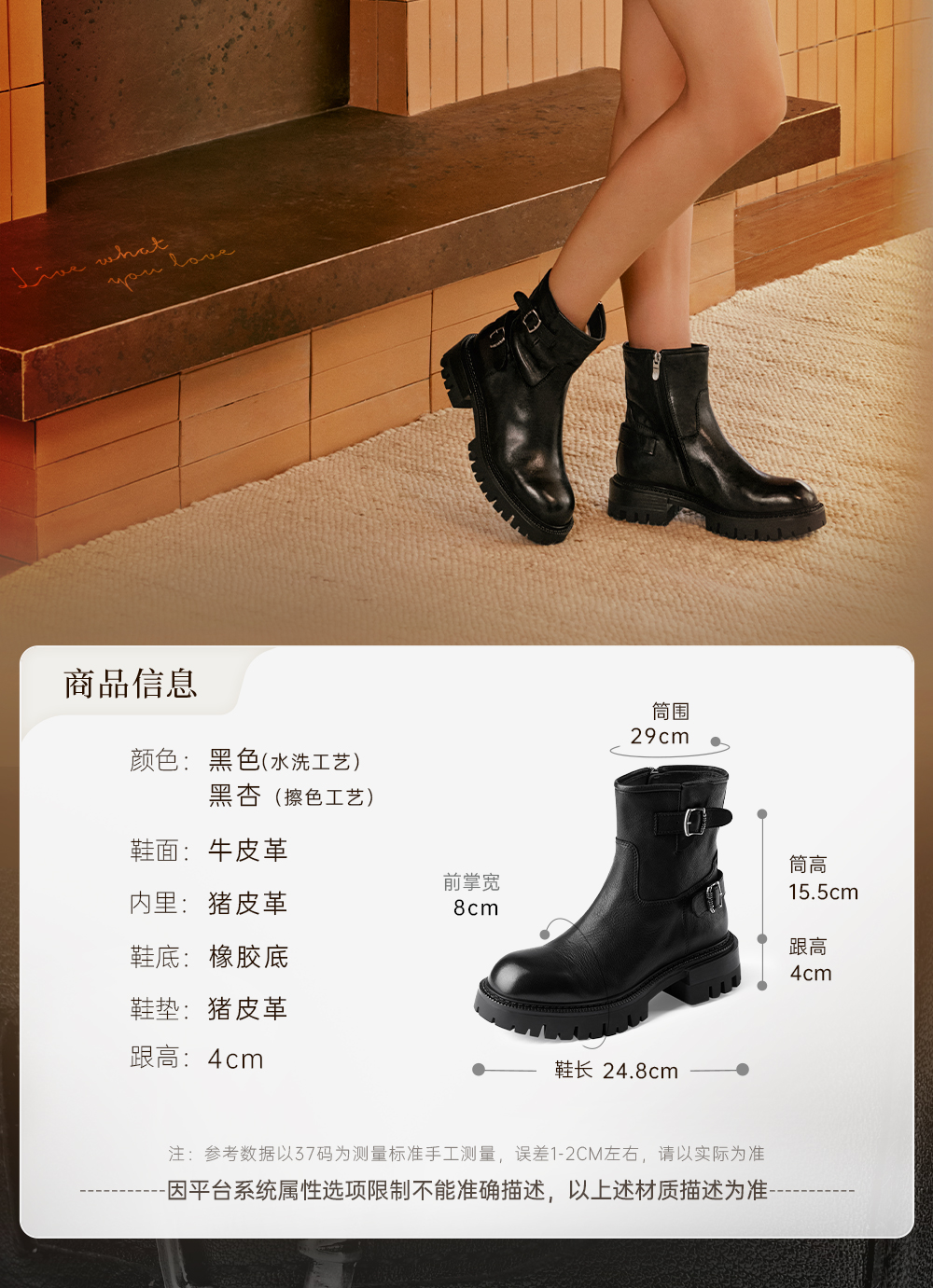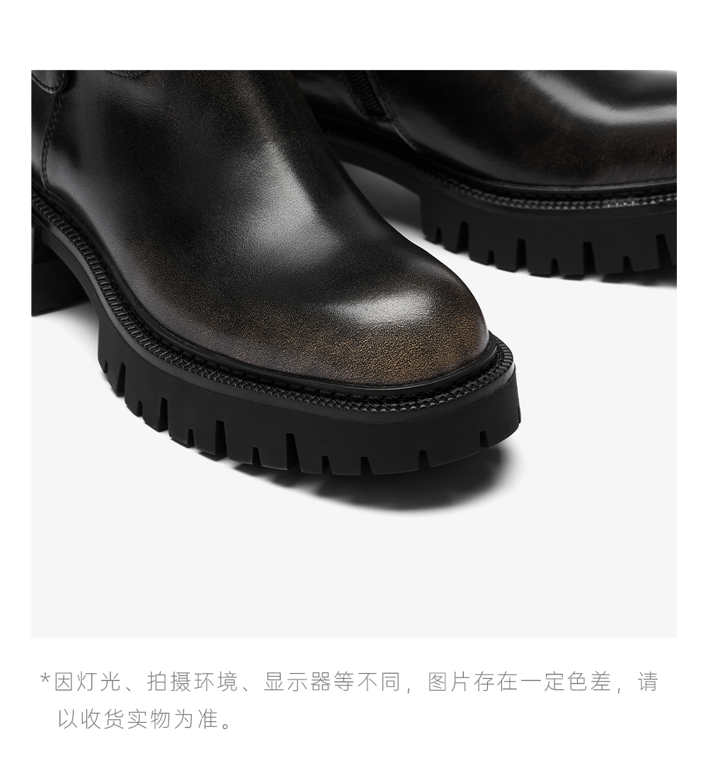 | 鞋头款式:圆头 | 鞋底材质:橡胶底 | 鞋面图案:纯色 | 靴筒内里材质:猪皮革 | 内增高:无 |