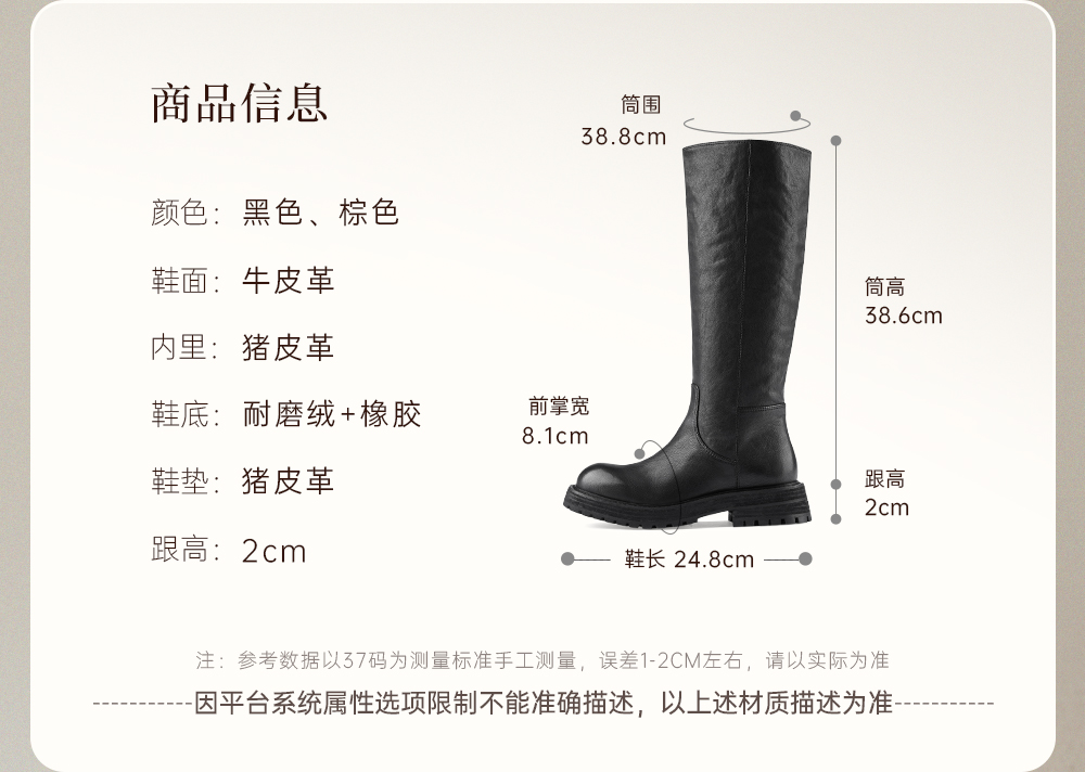 | 皮质特征:牛皮革 | 防水台高度:无 | 鞋类流行款式:骑士靴 |