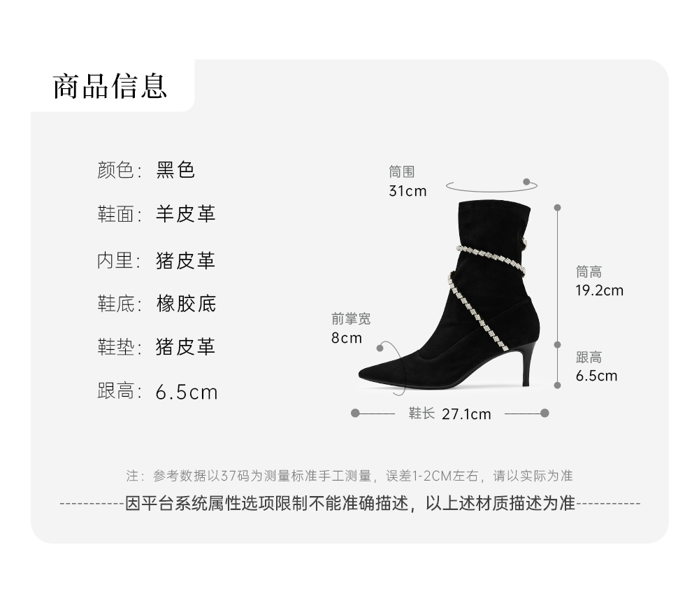 | 风格分类:时装靴 | 上市时间:2024年冬季 | 生产/经销/进口厂家:广州热带鞋业有限公司 | 鞋类流行款式:时装靴 | 鞋头款式:尖头 |