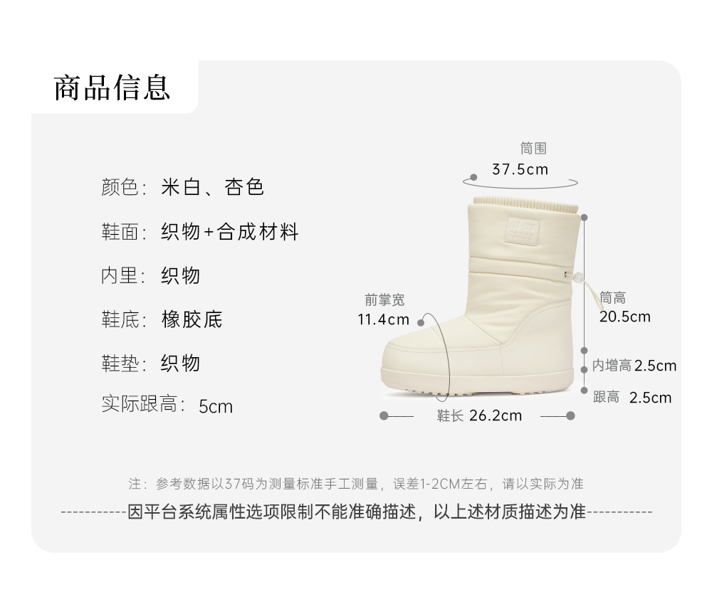| 风格分类:雪地靴 | 上市时间:2024年冬季 | 生产/经销/进口厂家:佛山市瀛领鞋业有限公司 | 鞋头款式:圆头 | 执行标准:QB/T 1002-2015 |