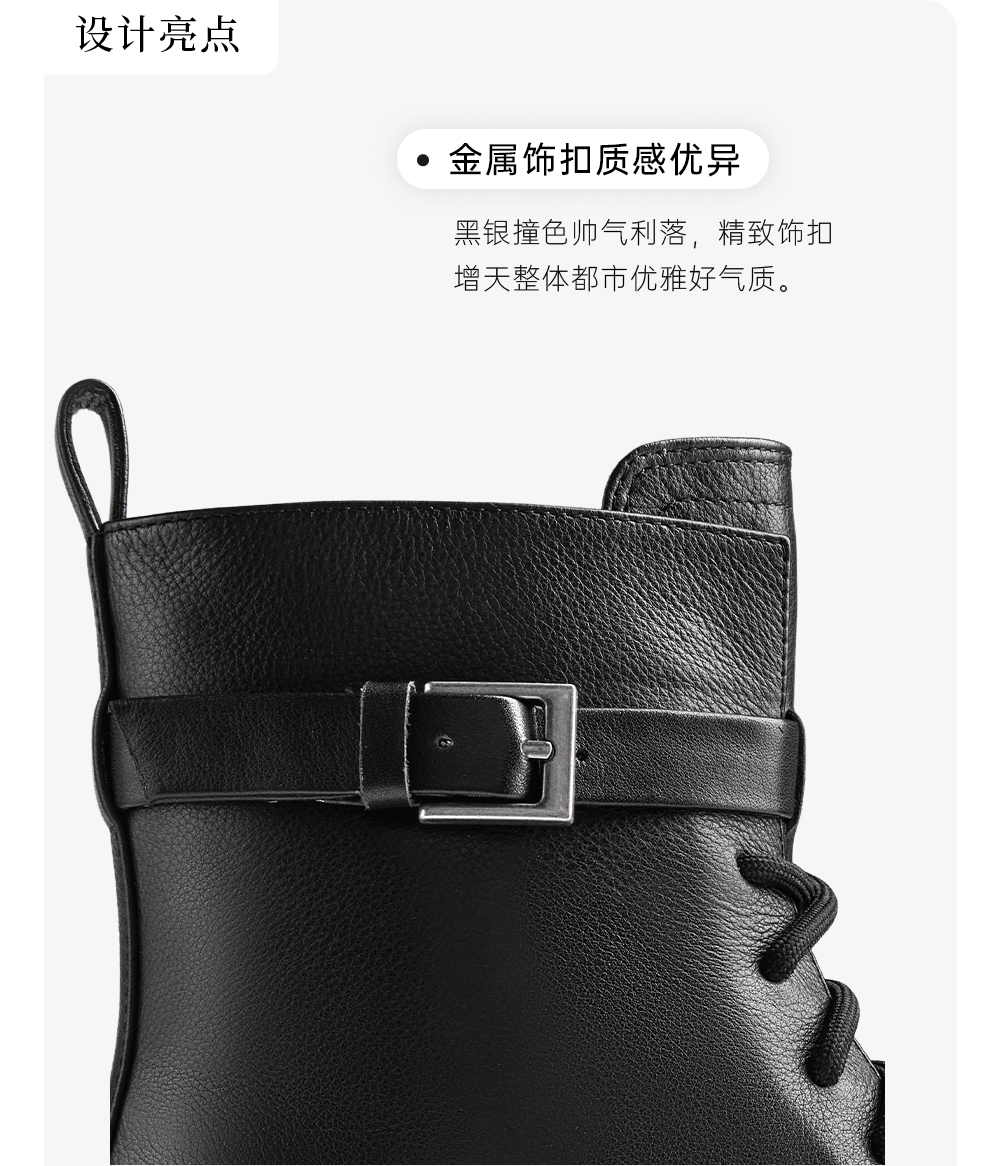 | 色系:黑色 | 跟高数值:4CM | 性别:女子 | 靴筒筒面材质:牛皮革 | 里料材质:猪皮革 |