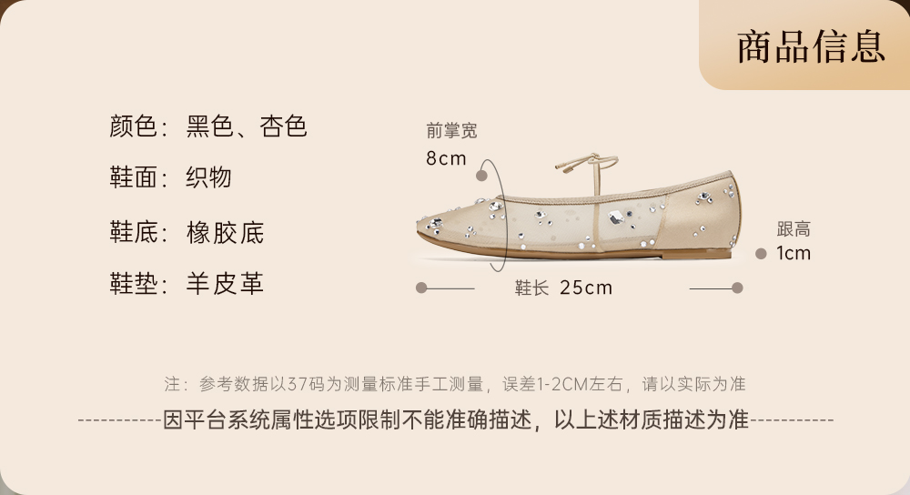 | 所在区域:电子商务 | 配跟:无 | 开口深度:浅口 | 风格分类:芭蕾舞鞋 | 上市时间:2025年春季 |