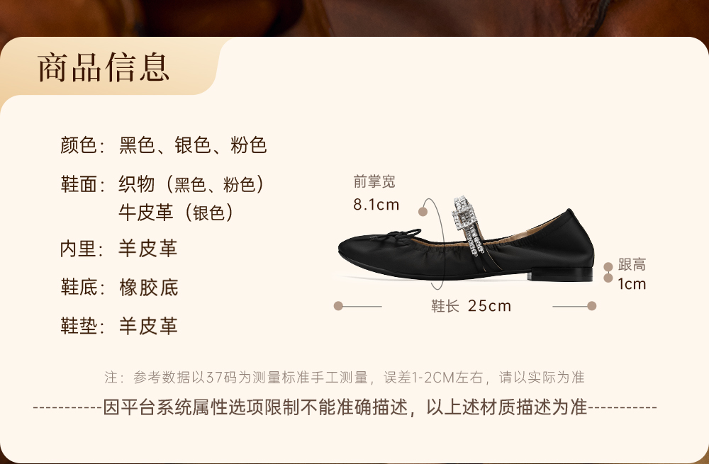 | 所在区域:电子商务 | 配跟:无 | 开口深度:浅口 | 风格分类:芭蕾舞鞋 | 上市时间:2025年春季 |