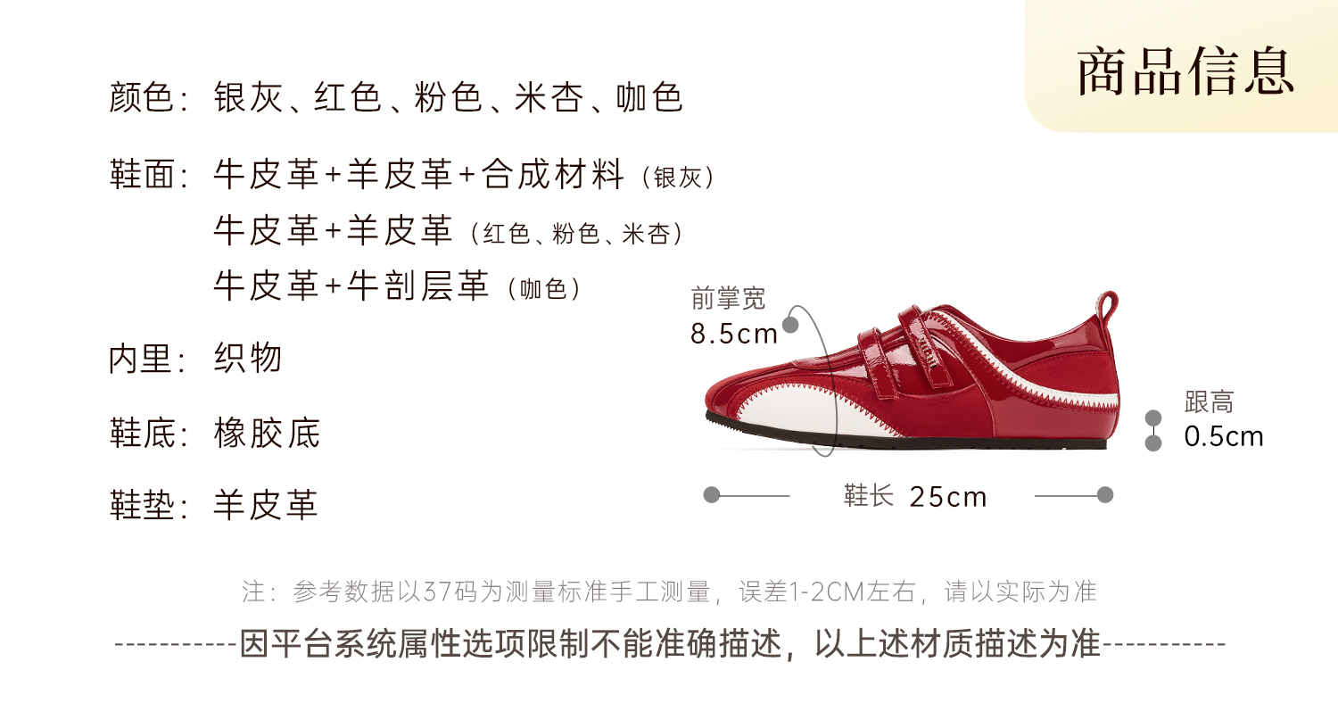 | 鞋跟形状:平跟 | 鞋面材质:牛皮革 | 流行元素:拼色 | 参考鞋长(女):25CM | 参考鞋宽(女):8.5CM |