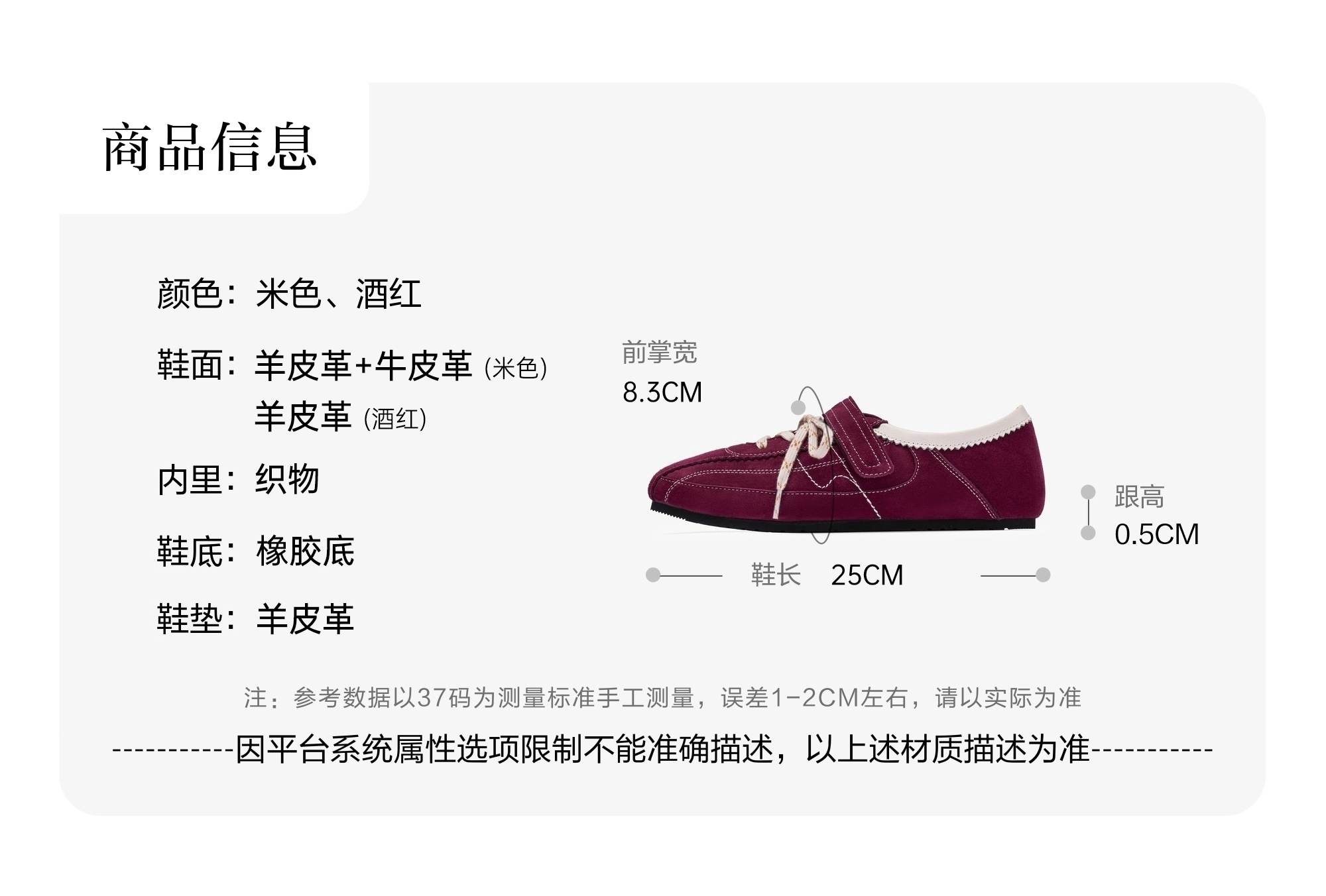 | 上市时间:2025年秋季 | 款式季节:秋季 | 鞋垫材质:羊皮革 | 前掌高度:无 | 皮质特征:羊皮革 |