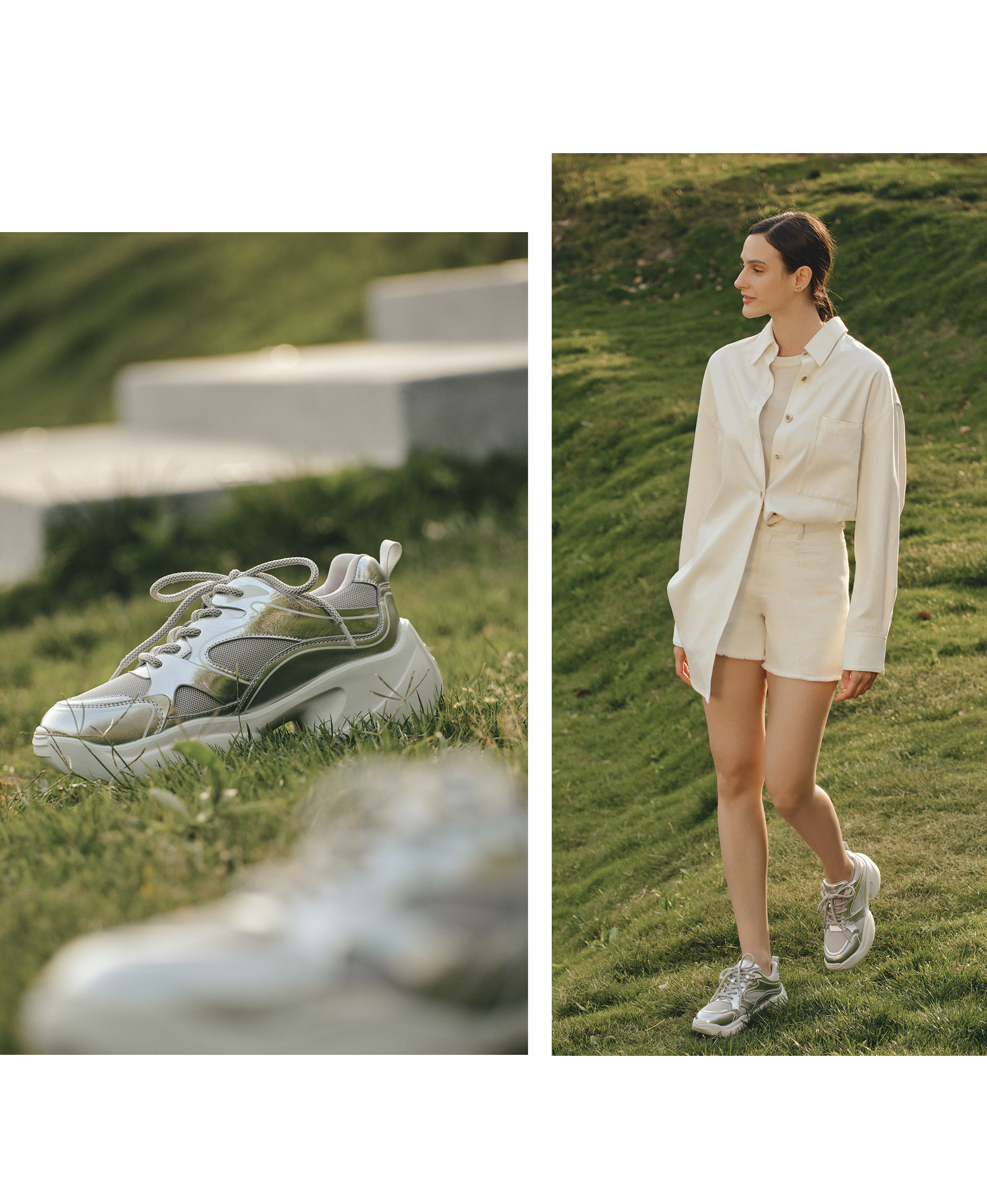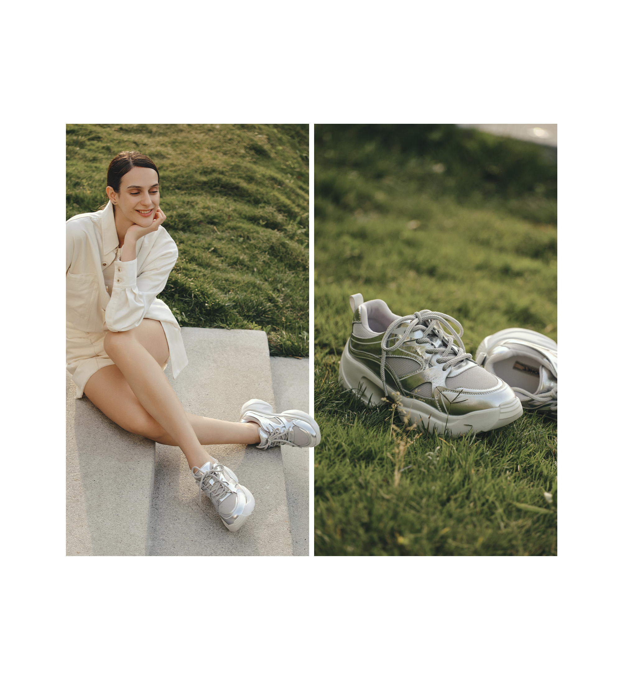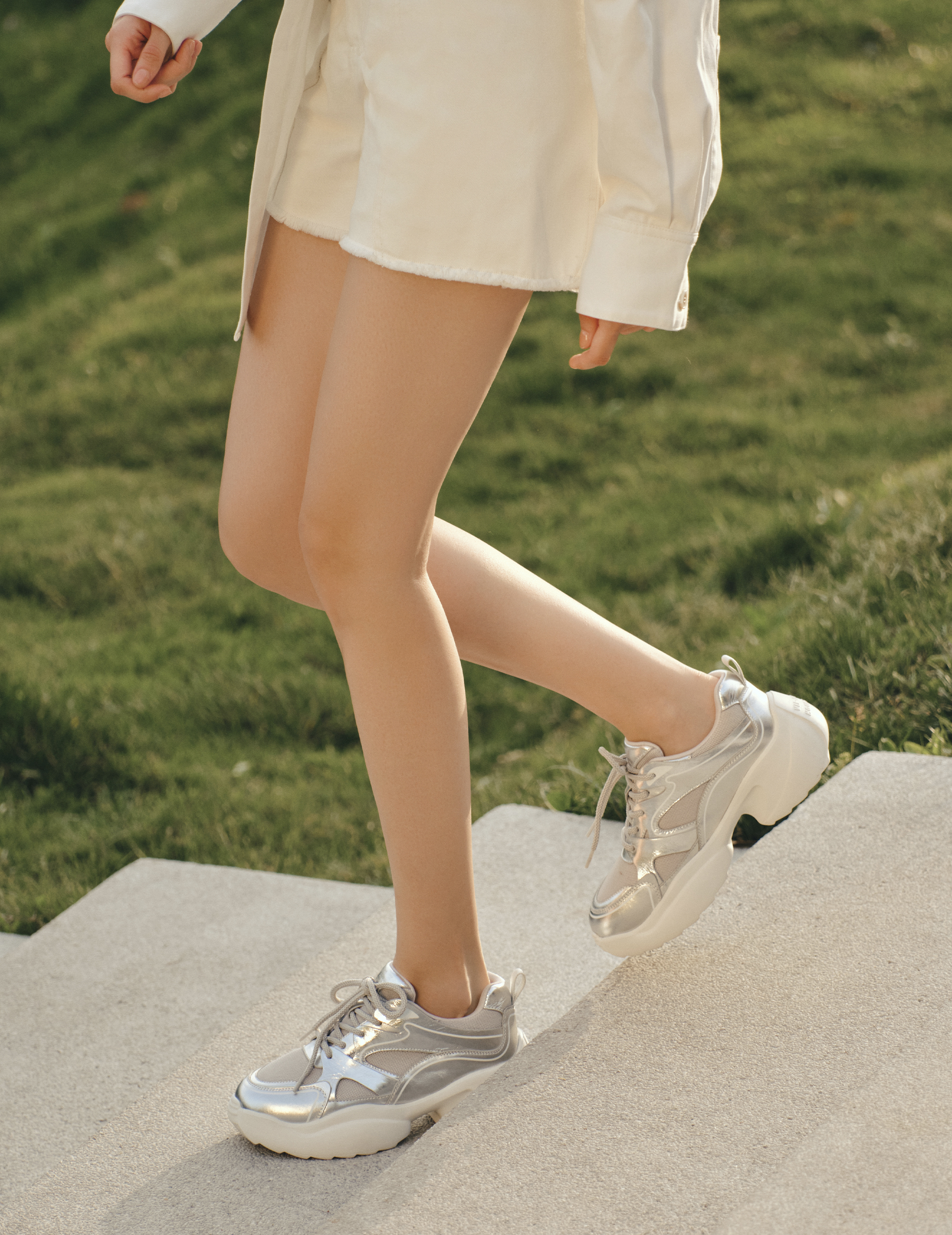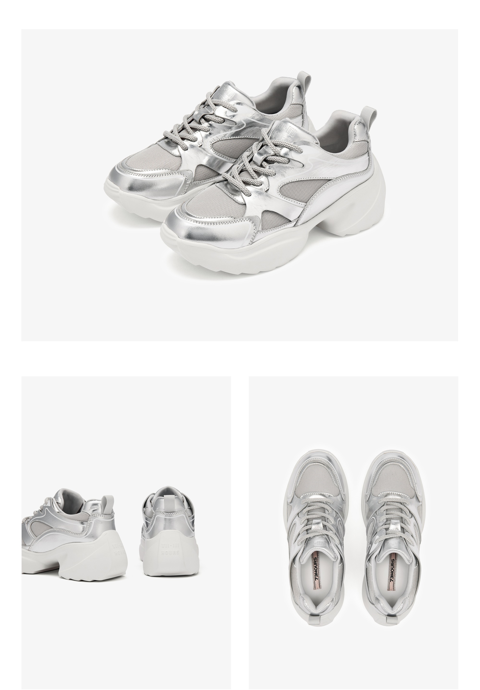 | 闭合方式:系带 | 风格:休闲 | 跟高数值:7.5CM | 色系:银色 | 配跟:无 |