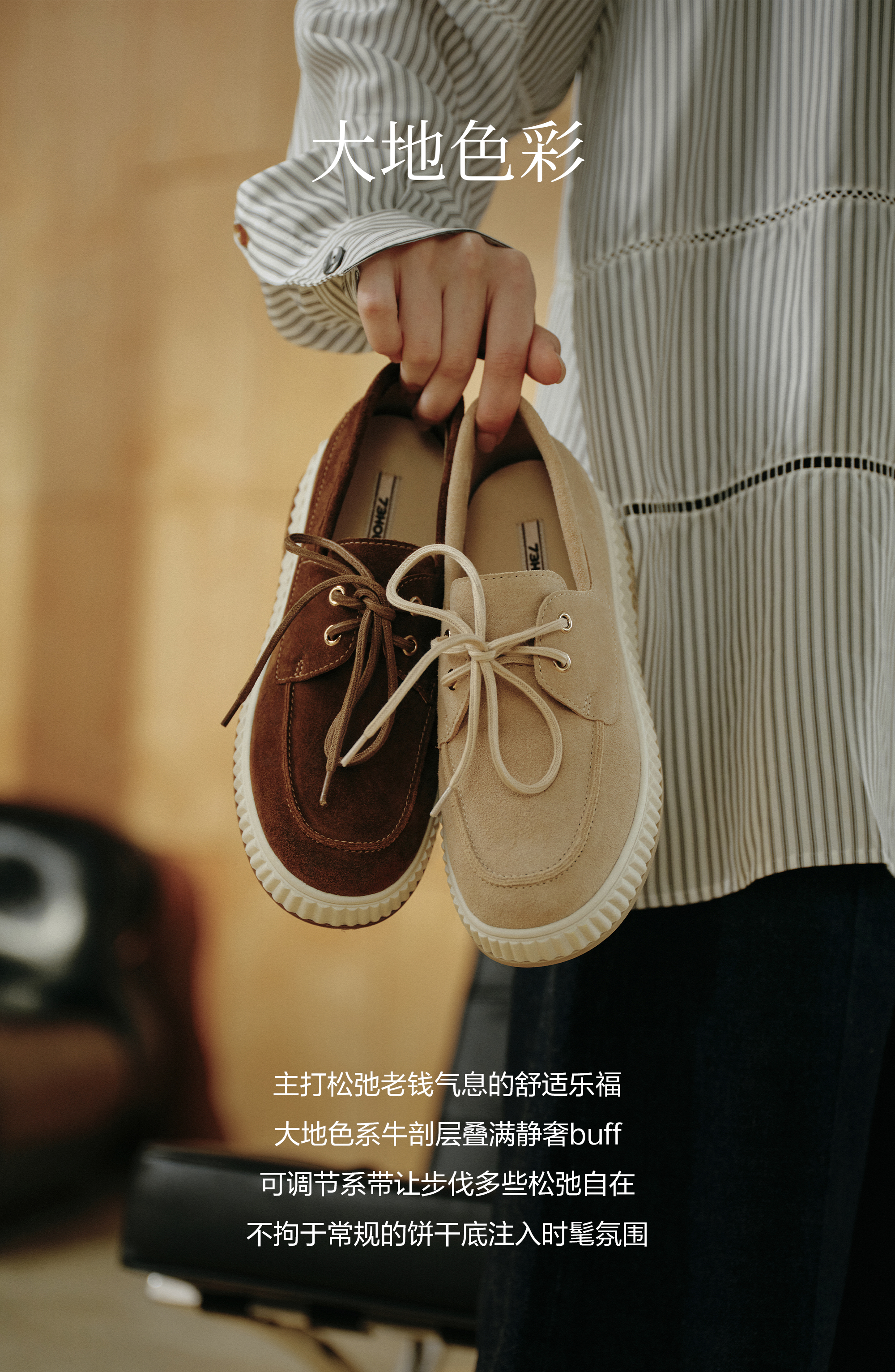 | 闭合方式:系带 | 风格:休闲 | 跟高数值:3CM | 色系:杏色 | 配跟:无 |