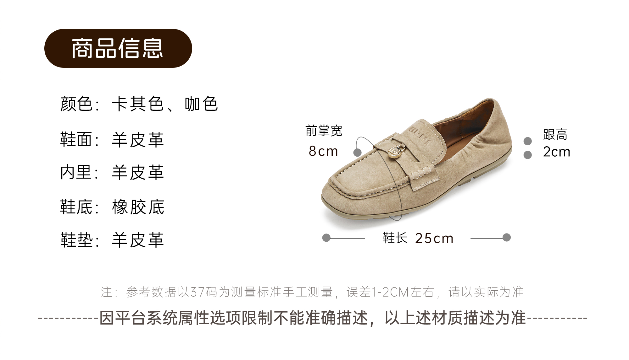 | 皮质特征:羊皮革 | 前掌高度:无 | 防水台高度:无 | 鞋类流行款式:乐福鞋 |