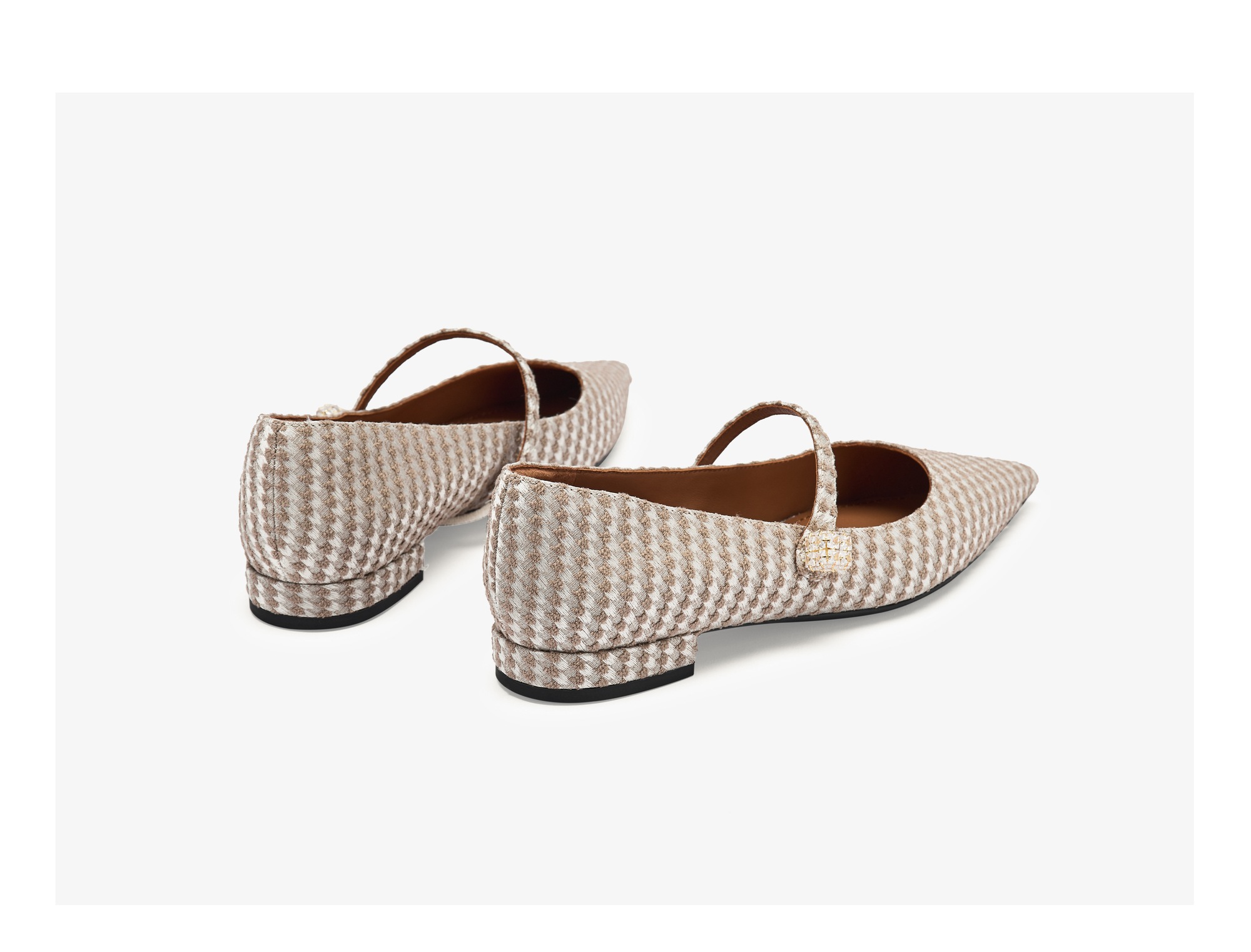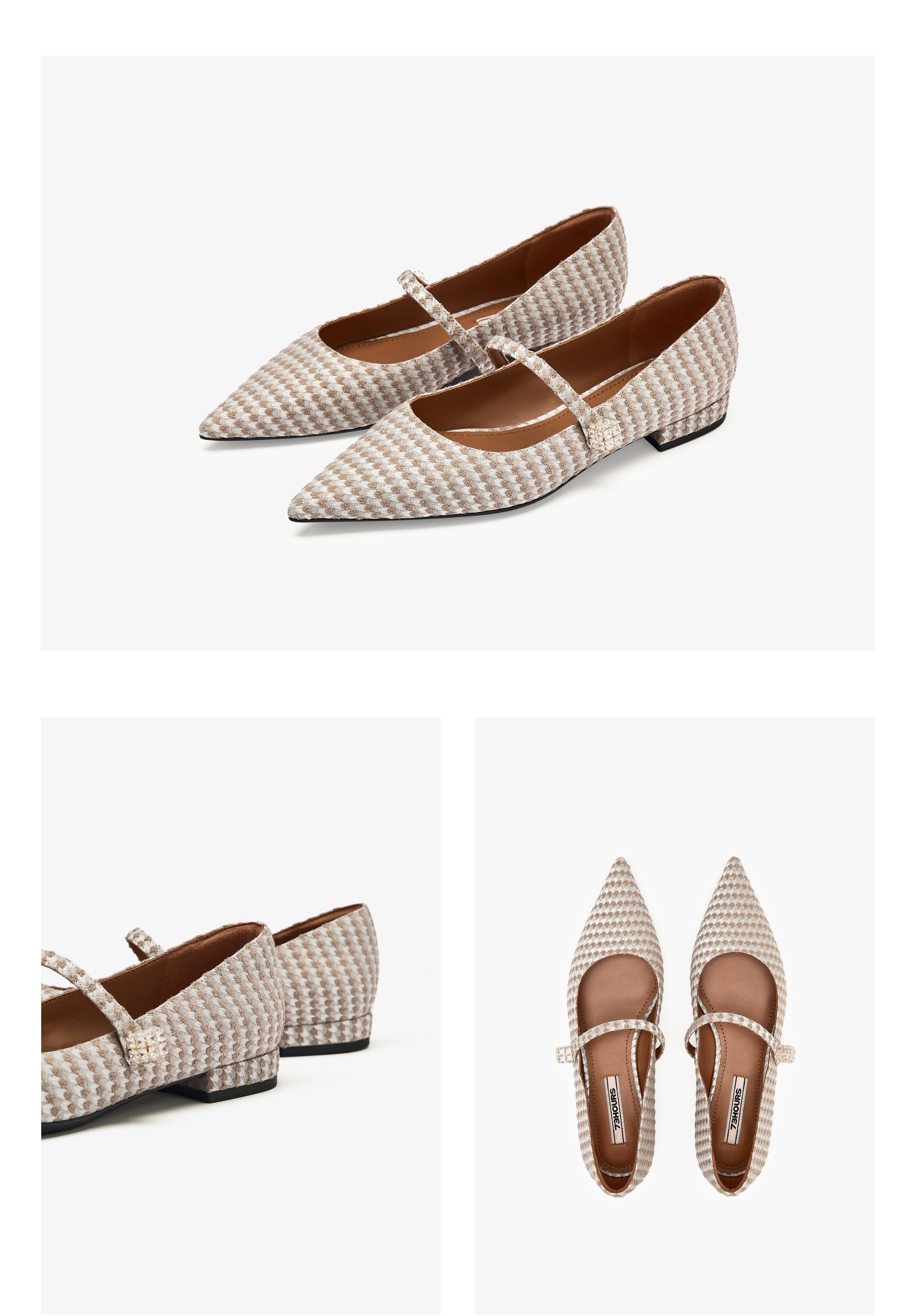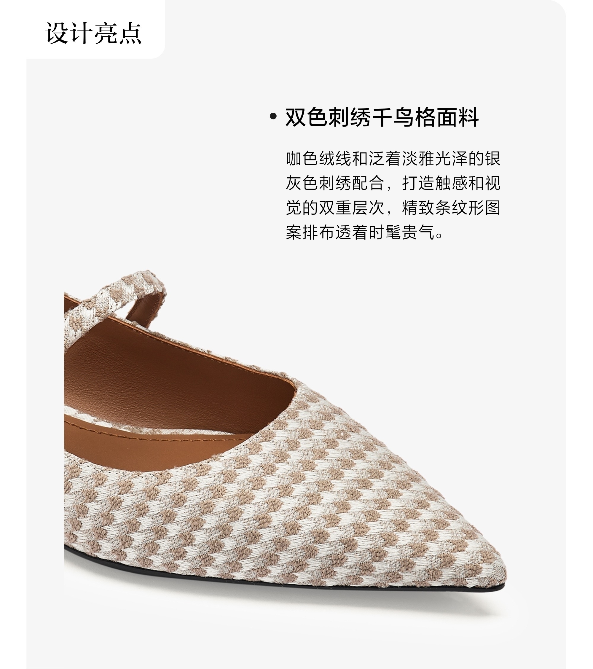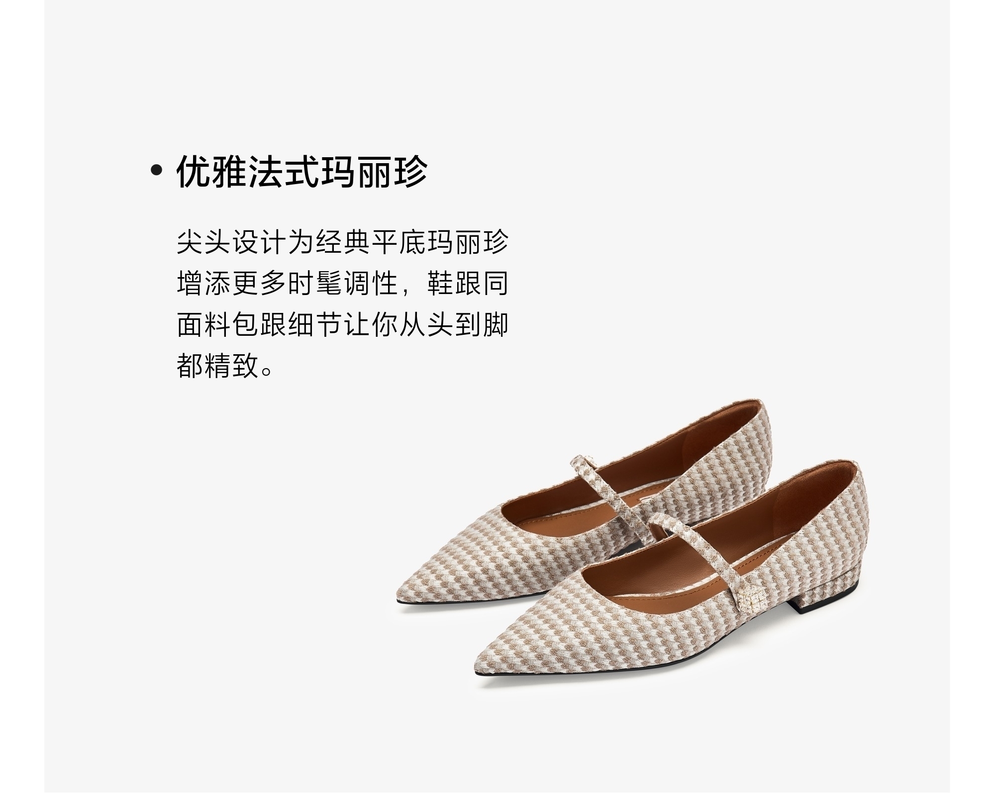 | 鞋头款式:尖头 | 鞋底材质:橡胶底 | 鞋面图案:纯色 | 内增高:无 | 鞋跟形状:平跟 |