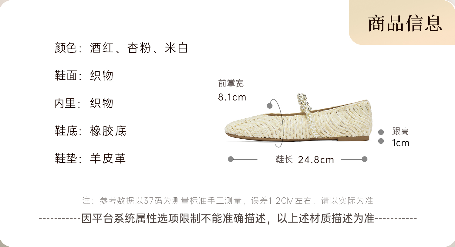 | 里料材质:织物 | 上市时间:2025年秋季 | 款式季节:秋季 | 鞋垫材质:羊皮革 | 前掌高度:无 |