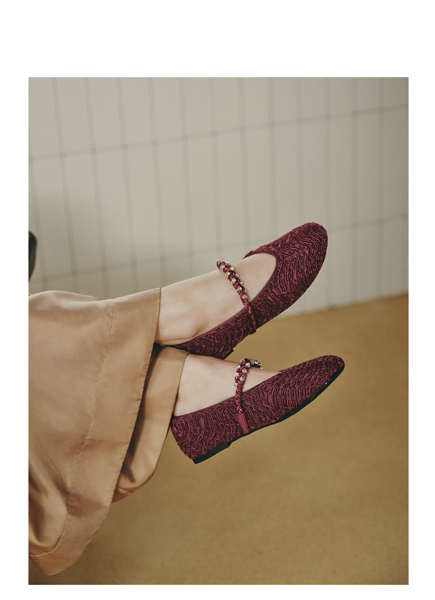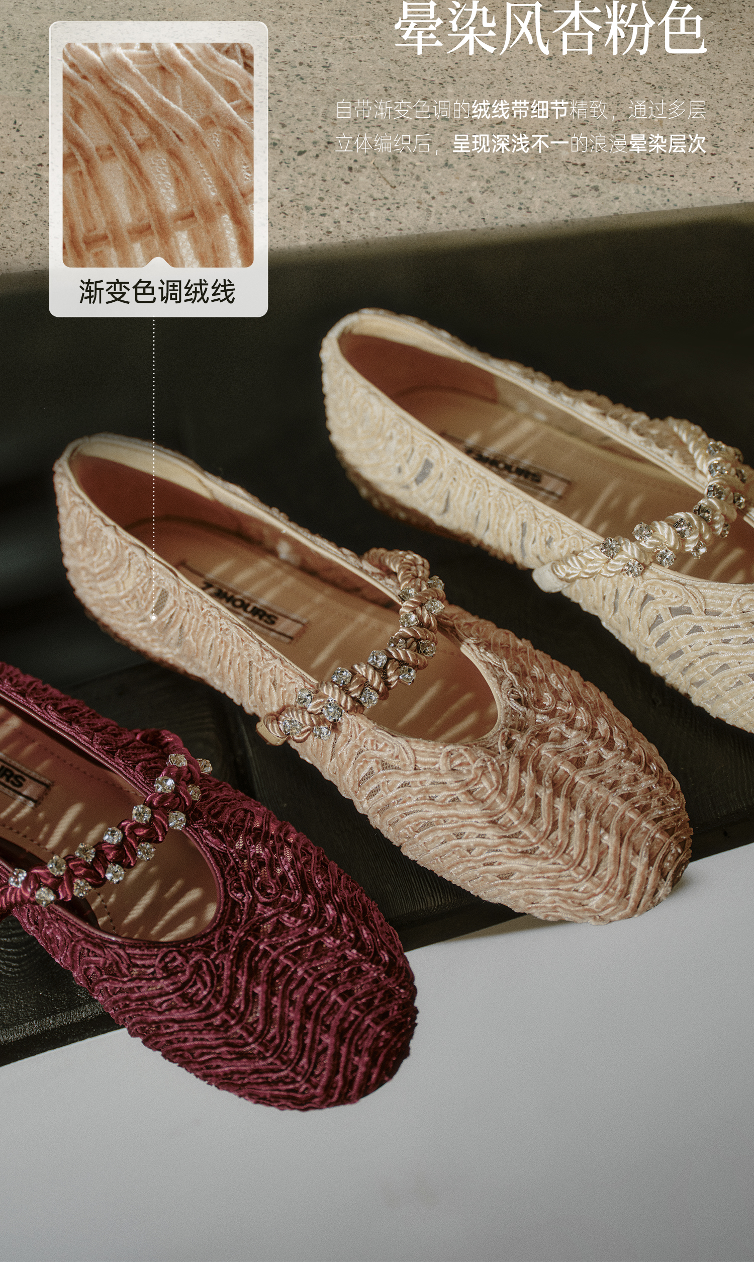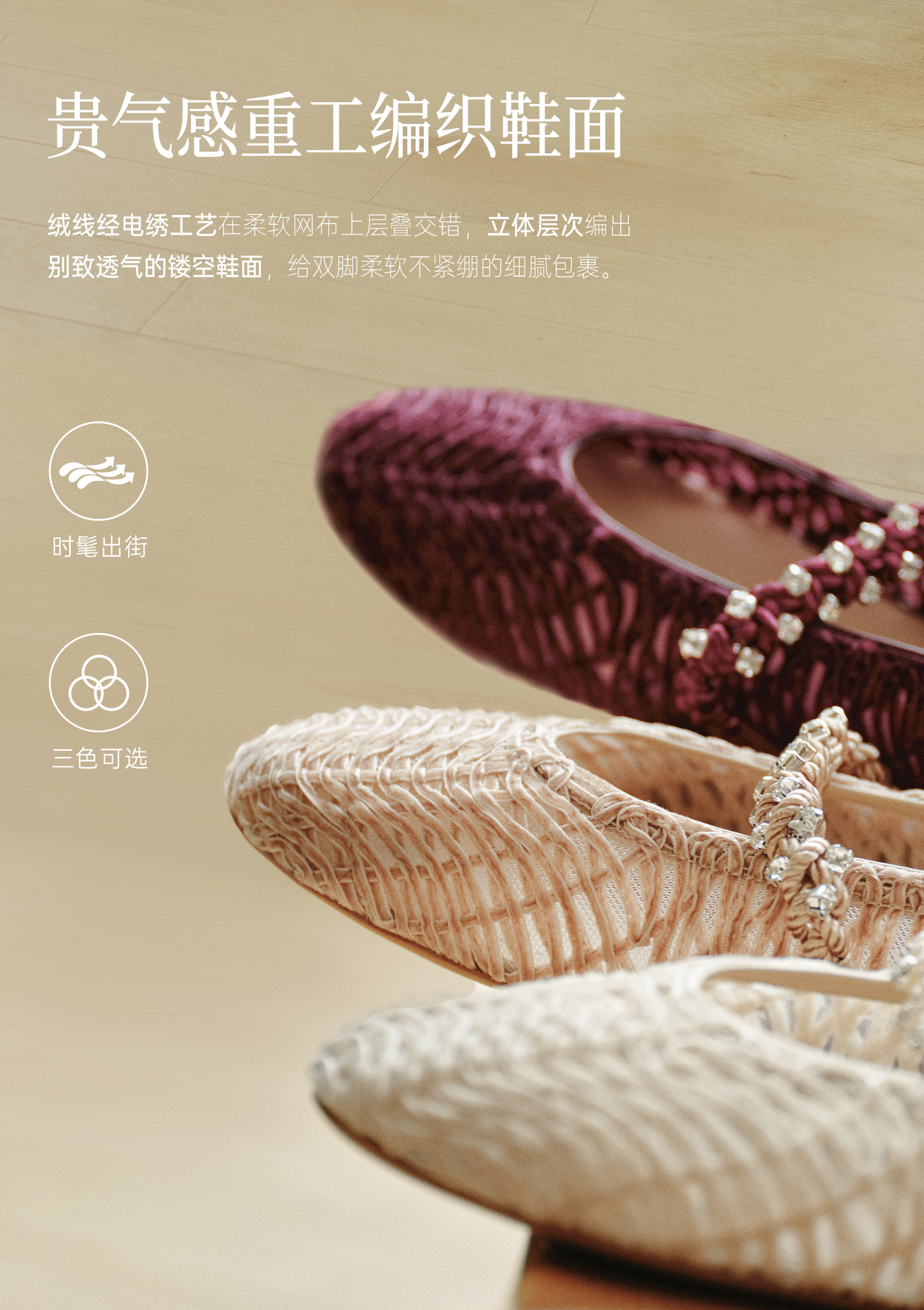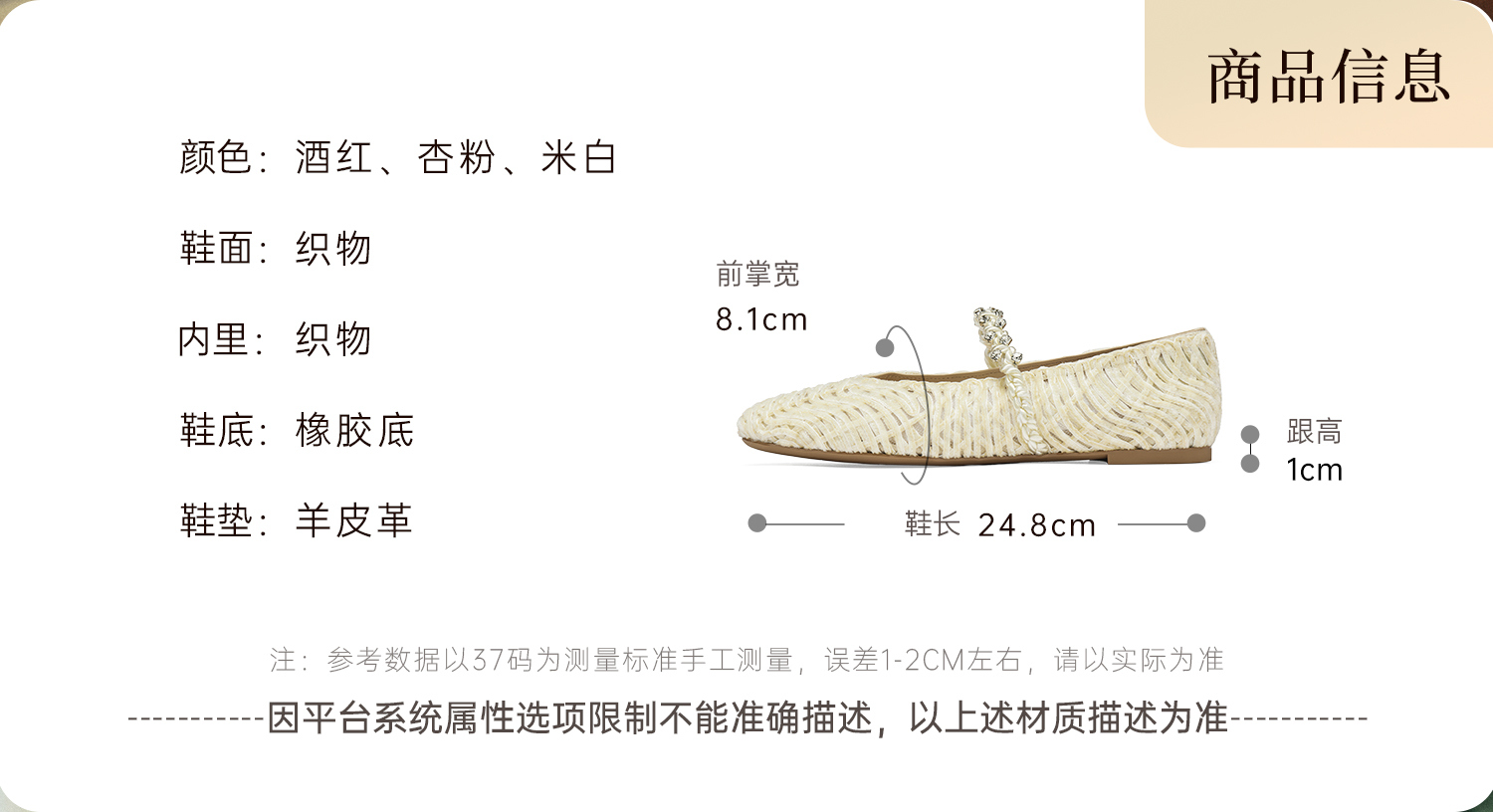| 鞋面内里材质:织物 | 色系:红色 | 跟高数值:1CM | 配跟:无 | 性别:女子 |