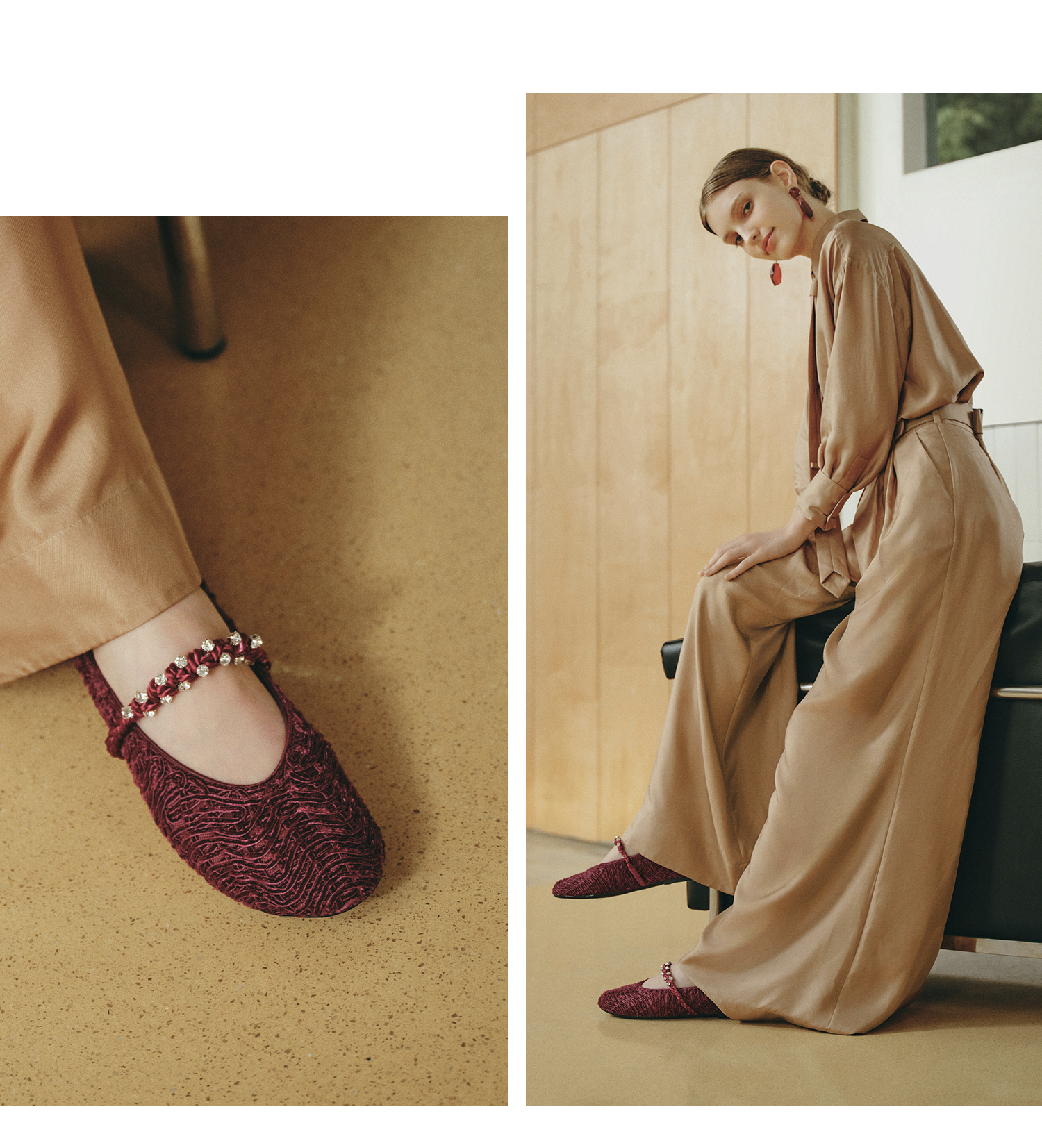 | 鞋面内里材质:织物 | 色系:红色 | 跟高数值:1CM | 配跟:无 | 性别:女子 |