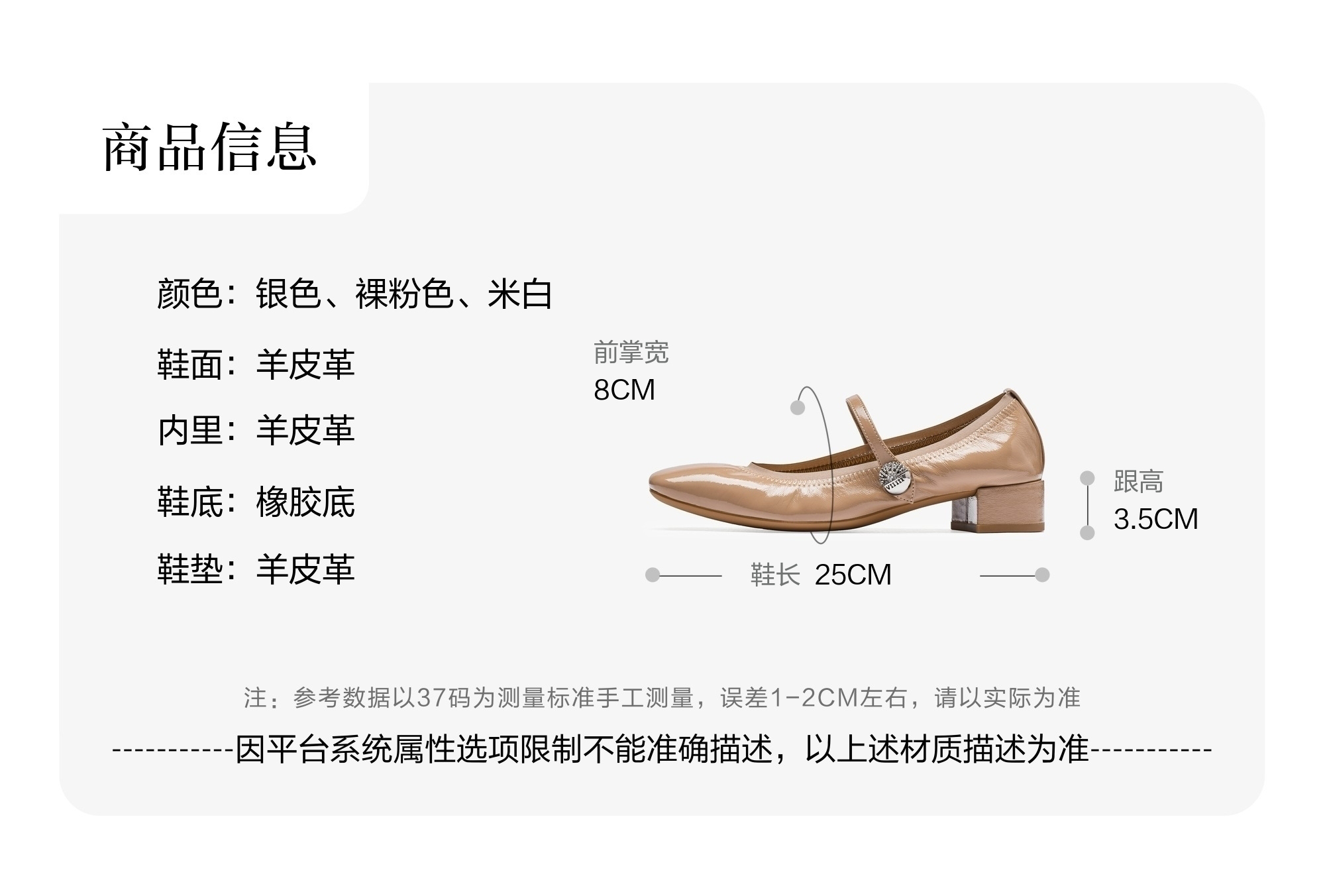 | 上市时间:2025年秋季 | 款式季节:秋季 | 鞋垫材质:羊皮革 | 前掌高度:无 | 皮质特征:羊皮革 |