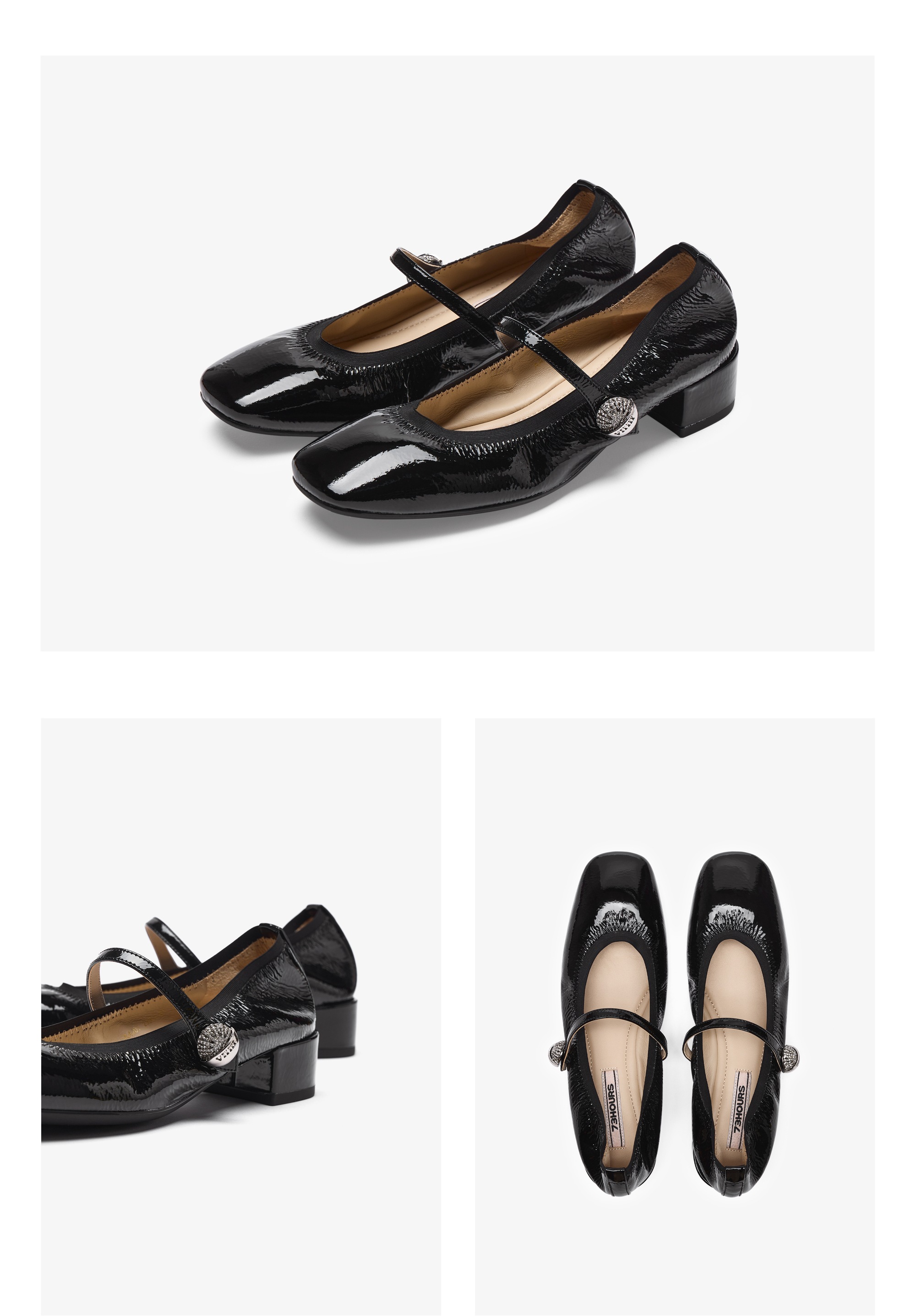 73hours女鞋可露丽2025秋季新品方跟纯色方头玛丽珍鞋