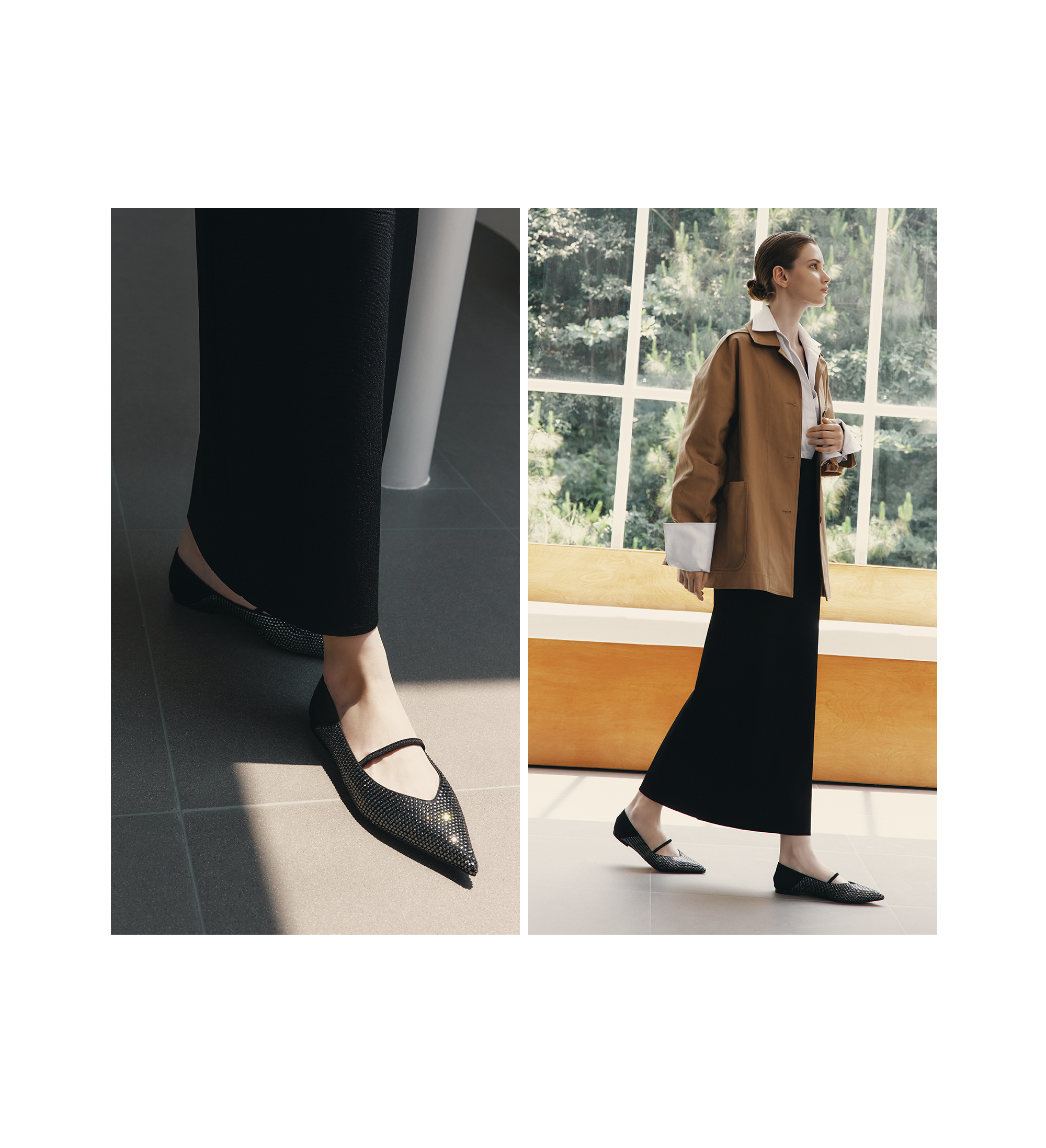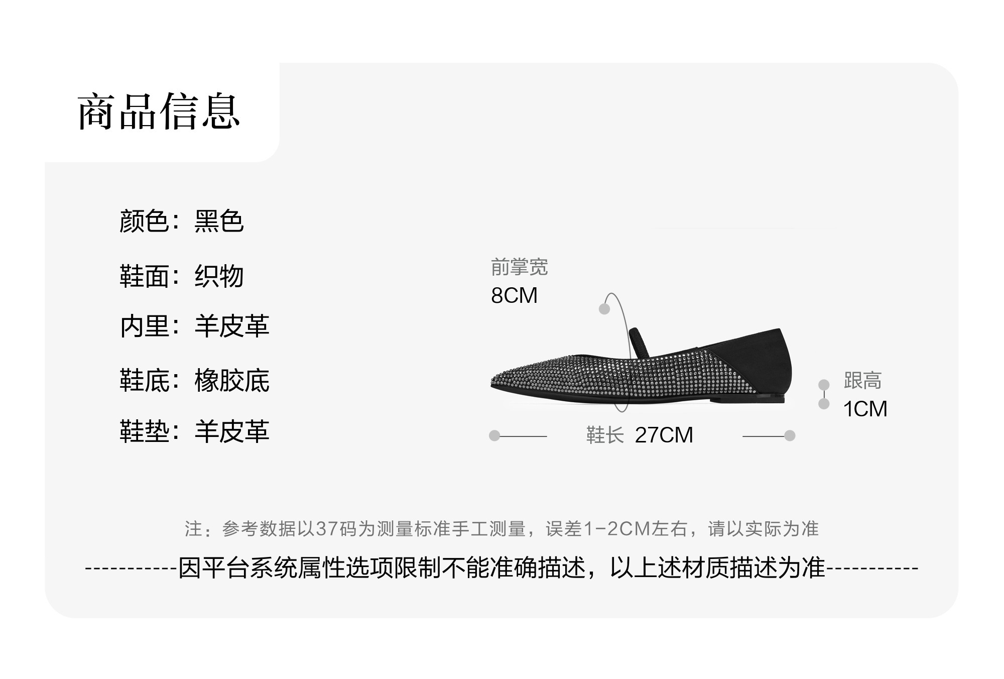 | 鞋头款式:尖头 | 鞋底材质:橡胶底 | 鞋面图案:纯色 | 内增高:无 | 鞋跟形状:平跟 |