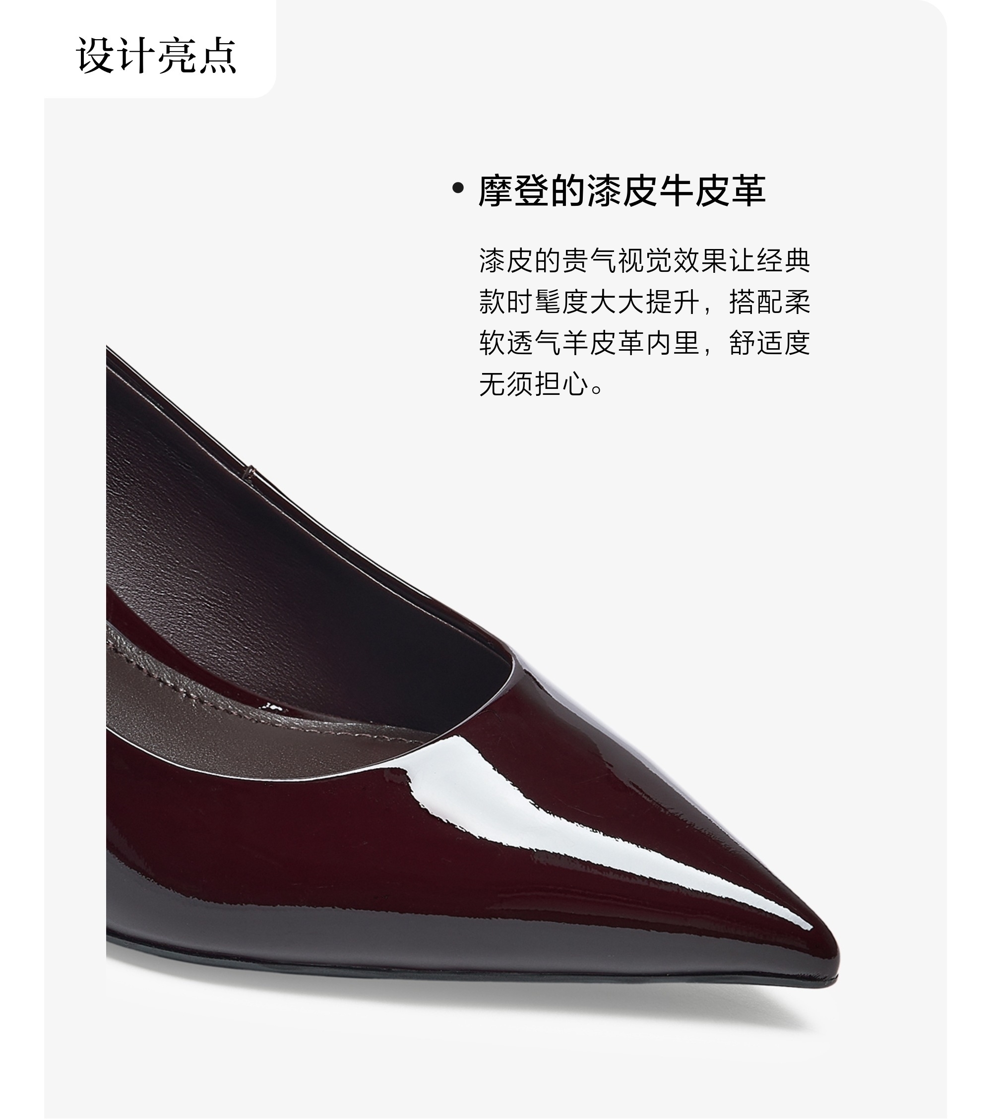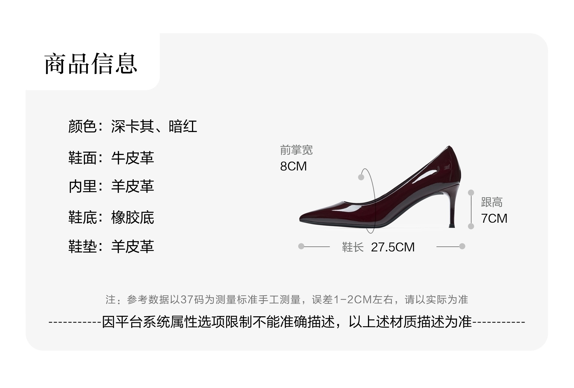 | 鞋头款式:尖头 | 鞋底材质:橡胶底 | 鞋面图案:纯色 | 内增高:无 | 鞋跟形状:细跟 |