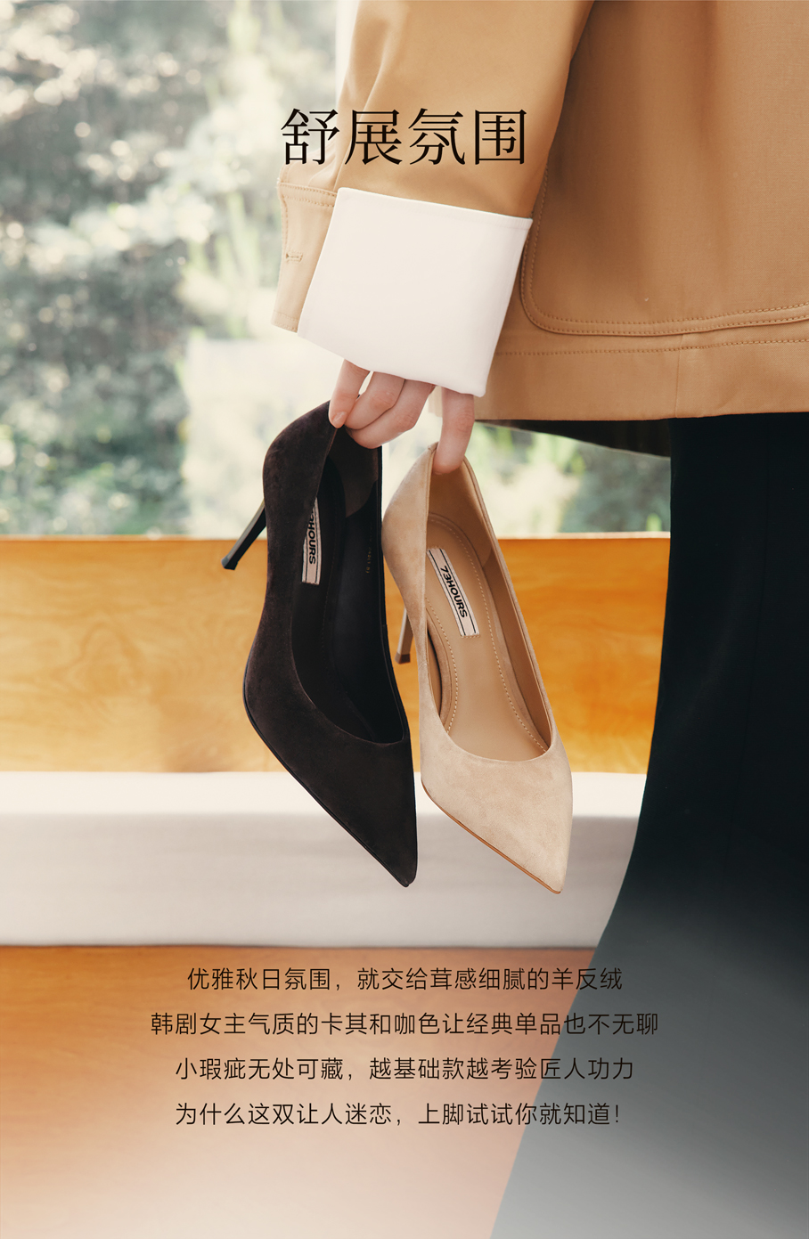 73hours女鞋舒展氛围2025秋季新品尖头细跟纯色高跟单鞋