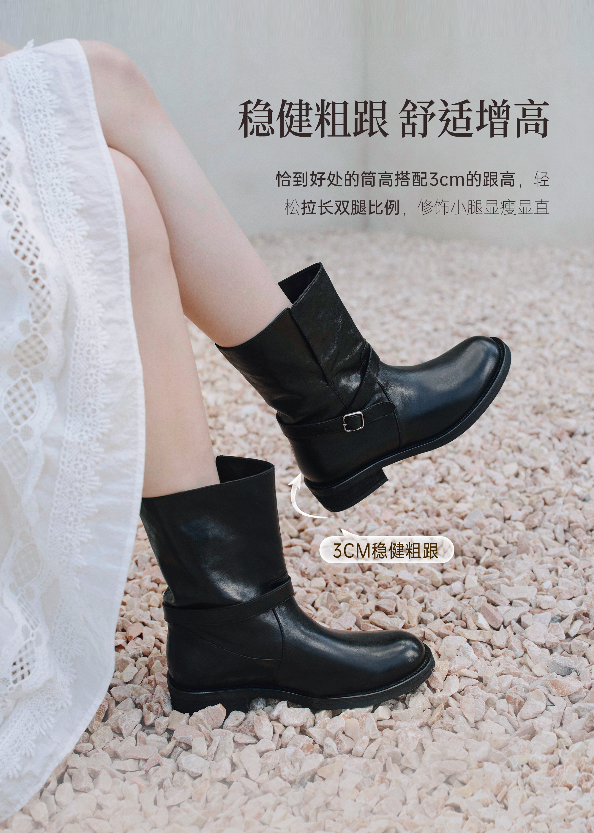 | 参考鞋宽(女):8.5CM | 风格:休闲 | 鞋面内里材质:猪皮革 | 色系:黑色 | 跟高数值:3CM |