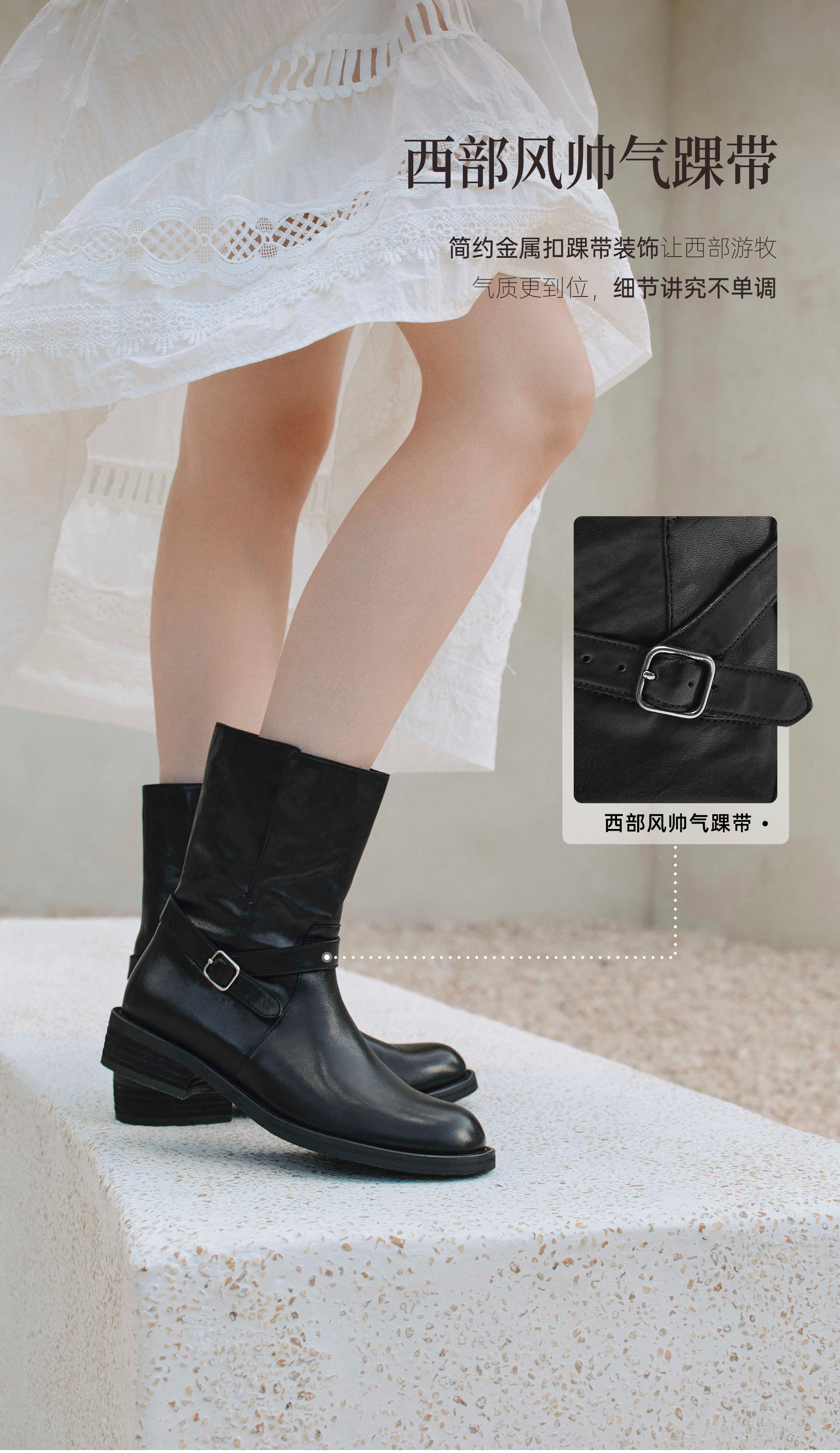 | 帮面材质:牛皮革 | 配跟:无 | 靴筒口围:32CM | 上市时间:2025年冬季 | 鞋类流行款式:西部靴 |