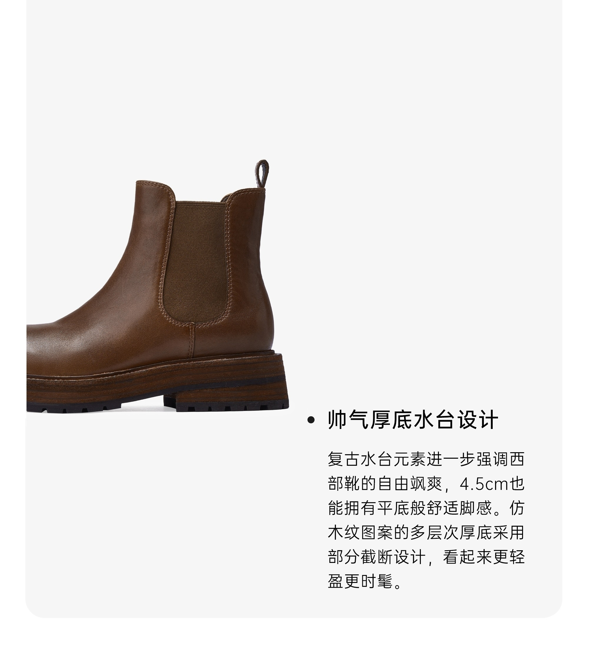 | 参考鞋宽(女):8.5CM | 风格:休闲 | 鞋面内里材质:猪皮革 | 色系:棕色 | 跟高数值:4.5CM |