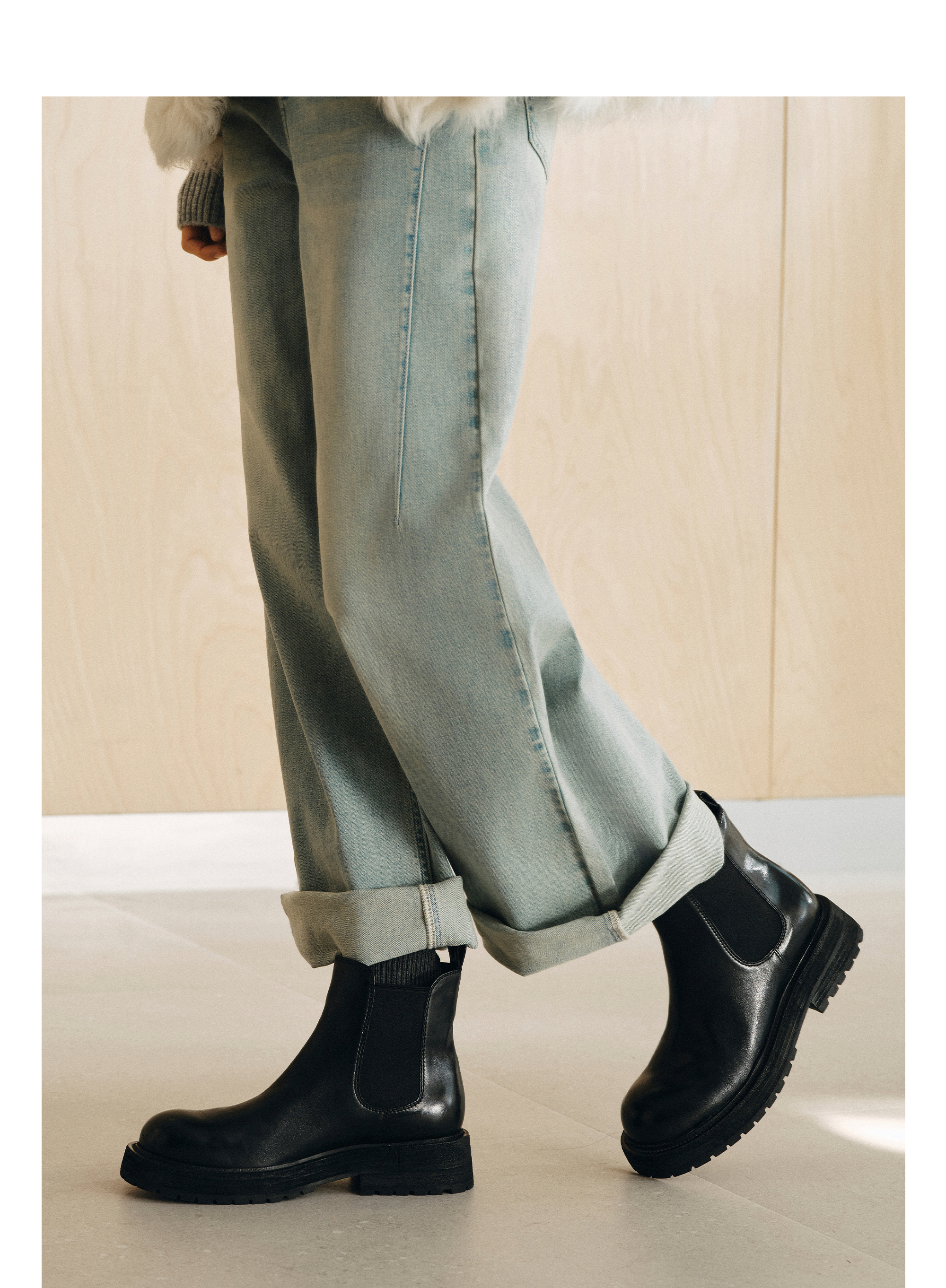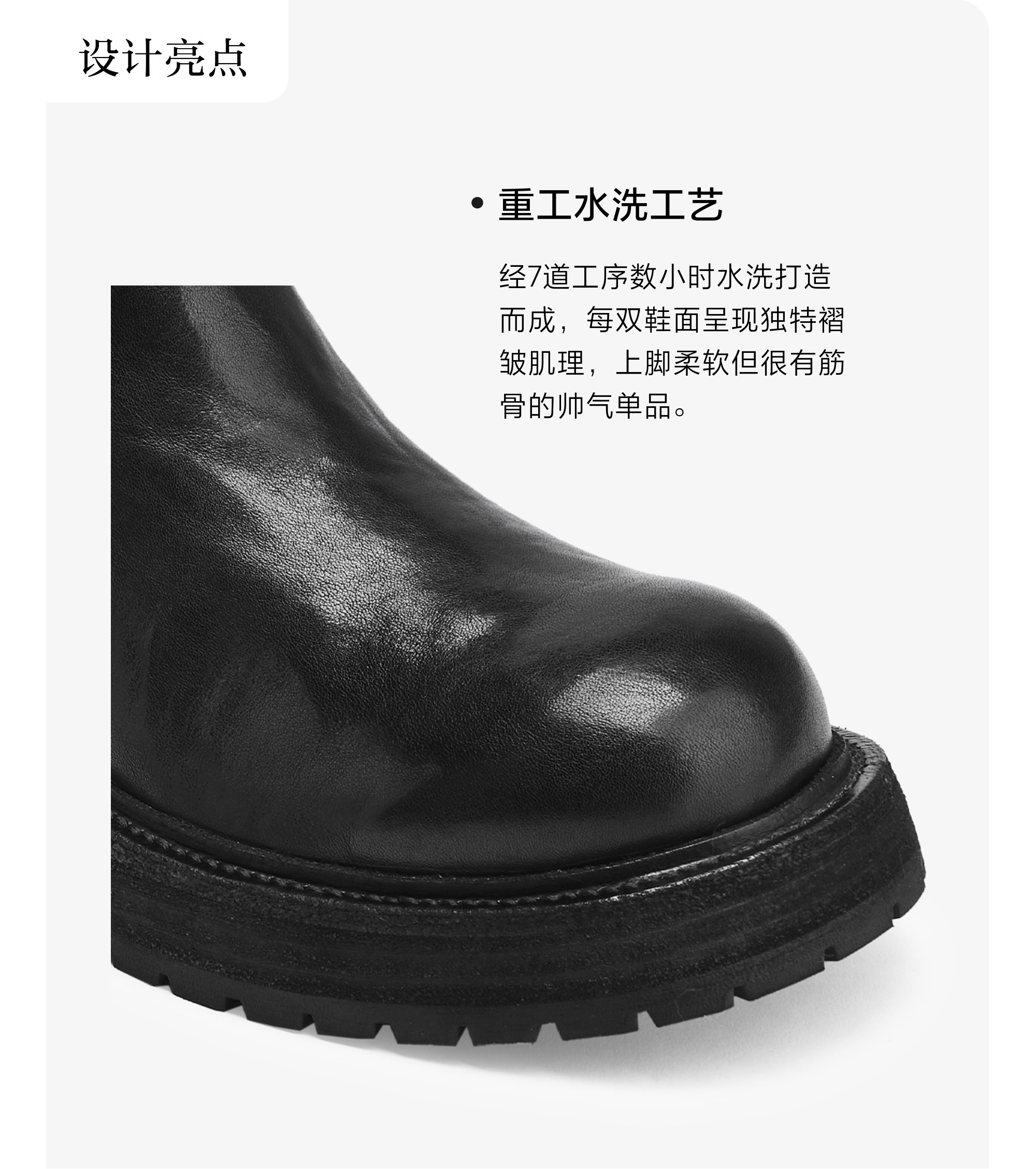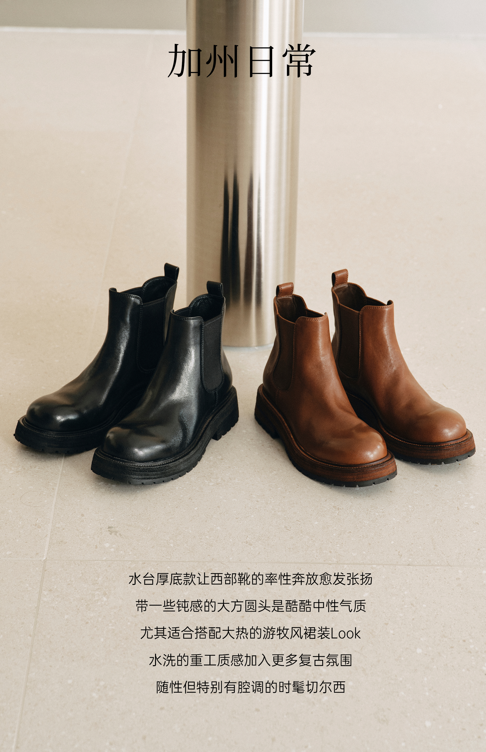| 帮面材质:牛皮革 | 配跟:无 | 靴筒口围:25CM | 上市时间:2025年冬季 | 鞋类流行款式:切尔西靴 |