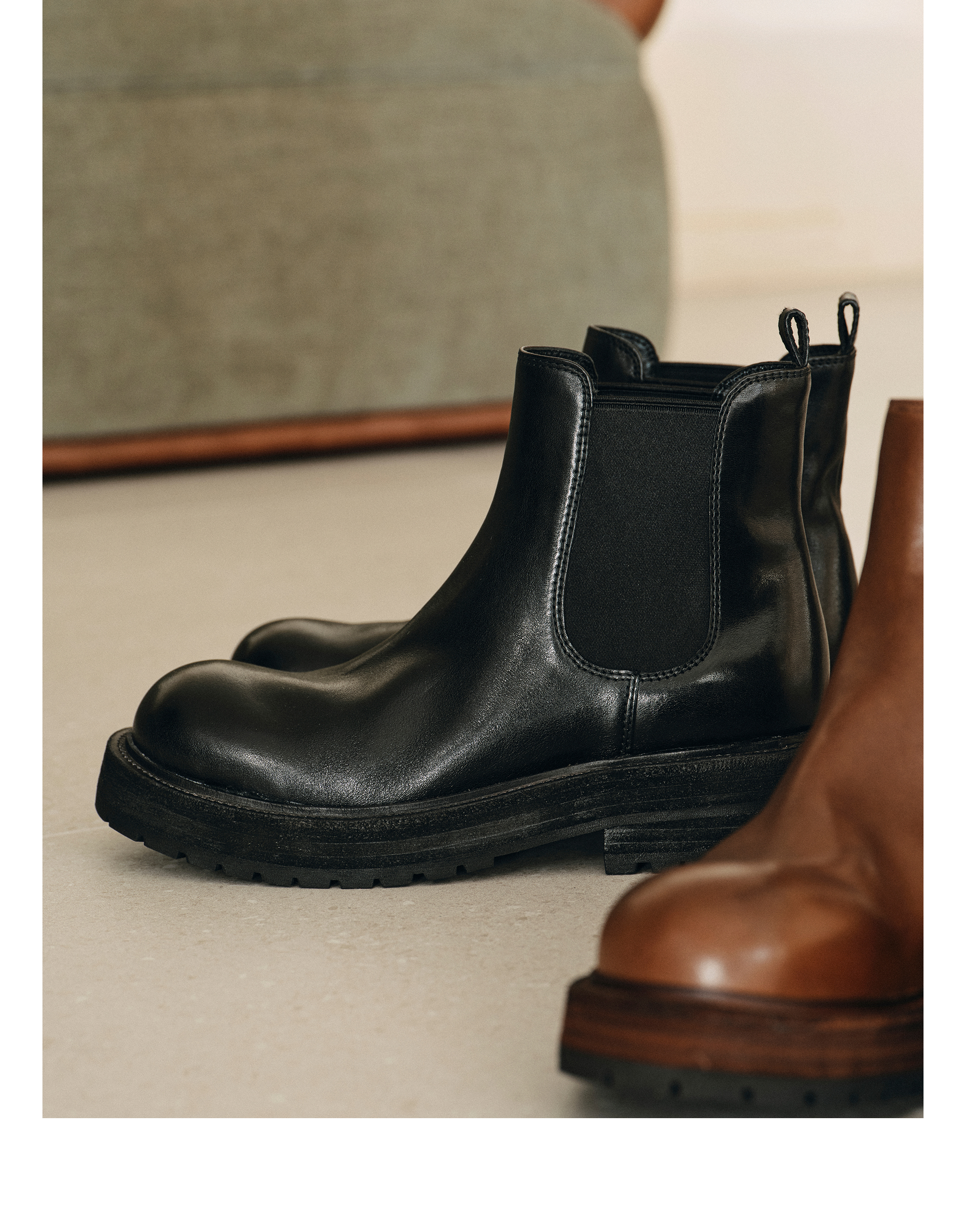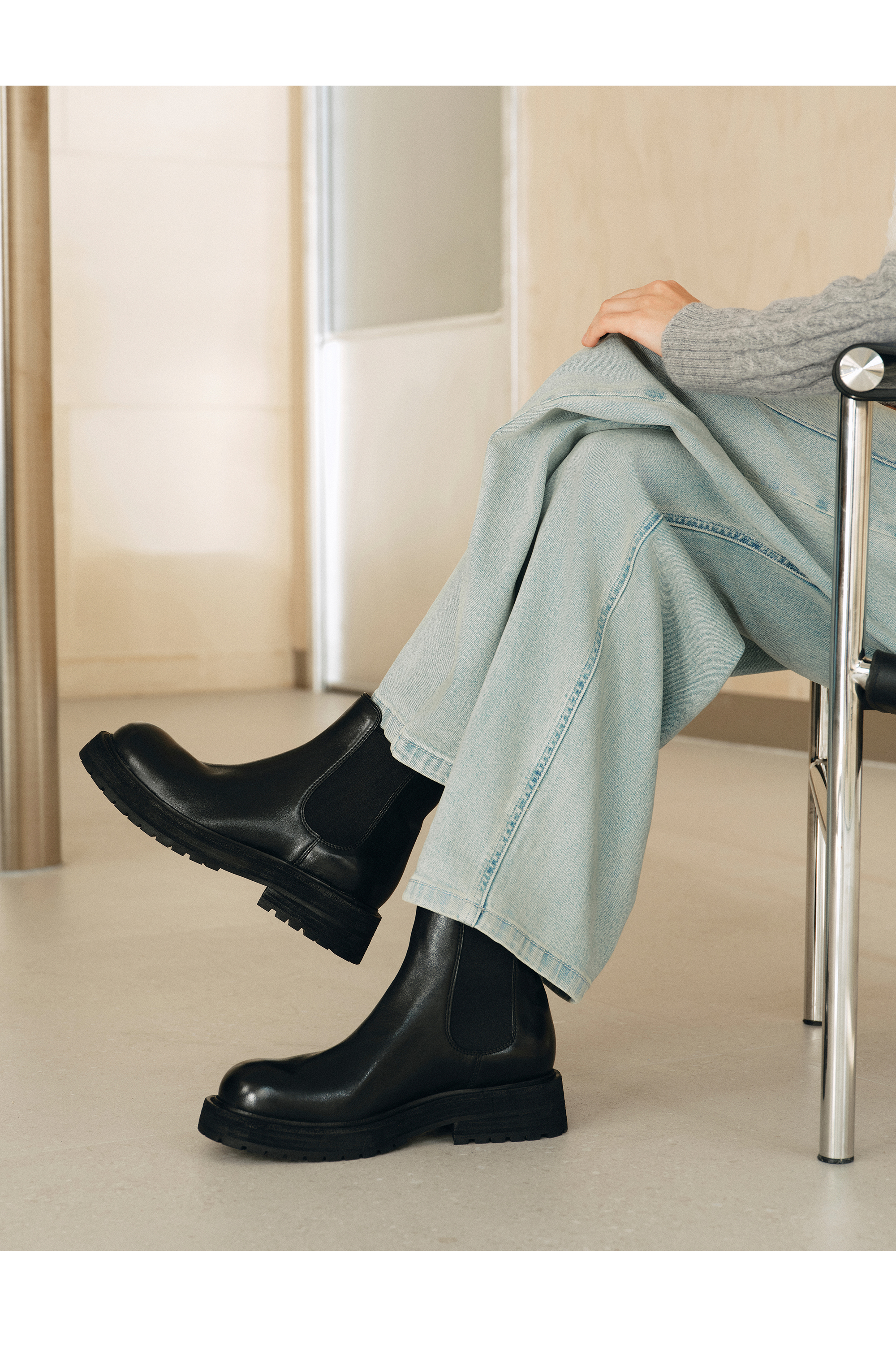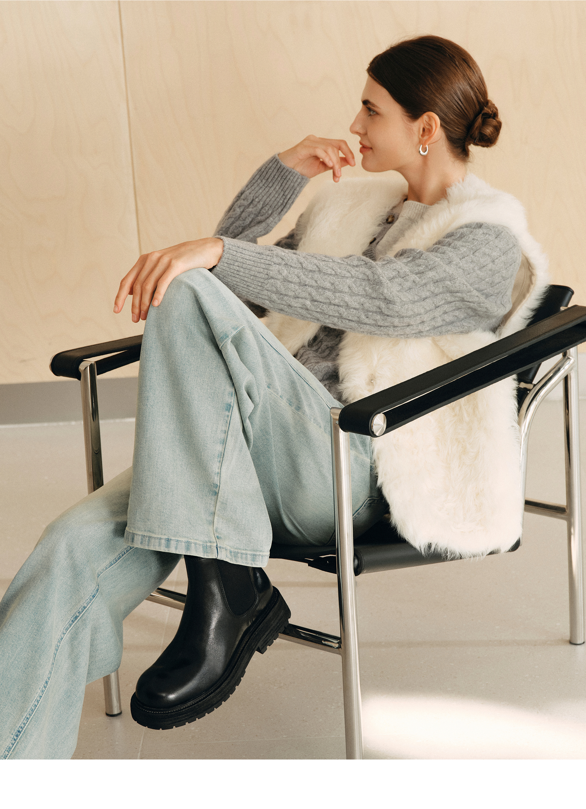 | 帮面材质:牛皮革 | 配跟:无 | 靴筒口围:25CM | 上市时间:2025年冬季 | 鞋类流行款式:切尔西靴 |