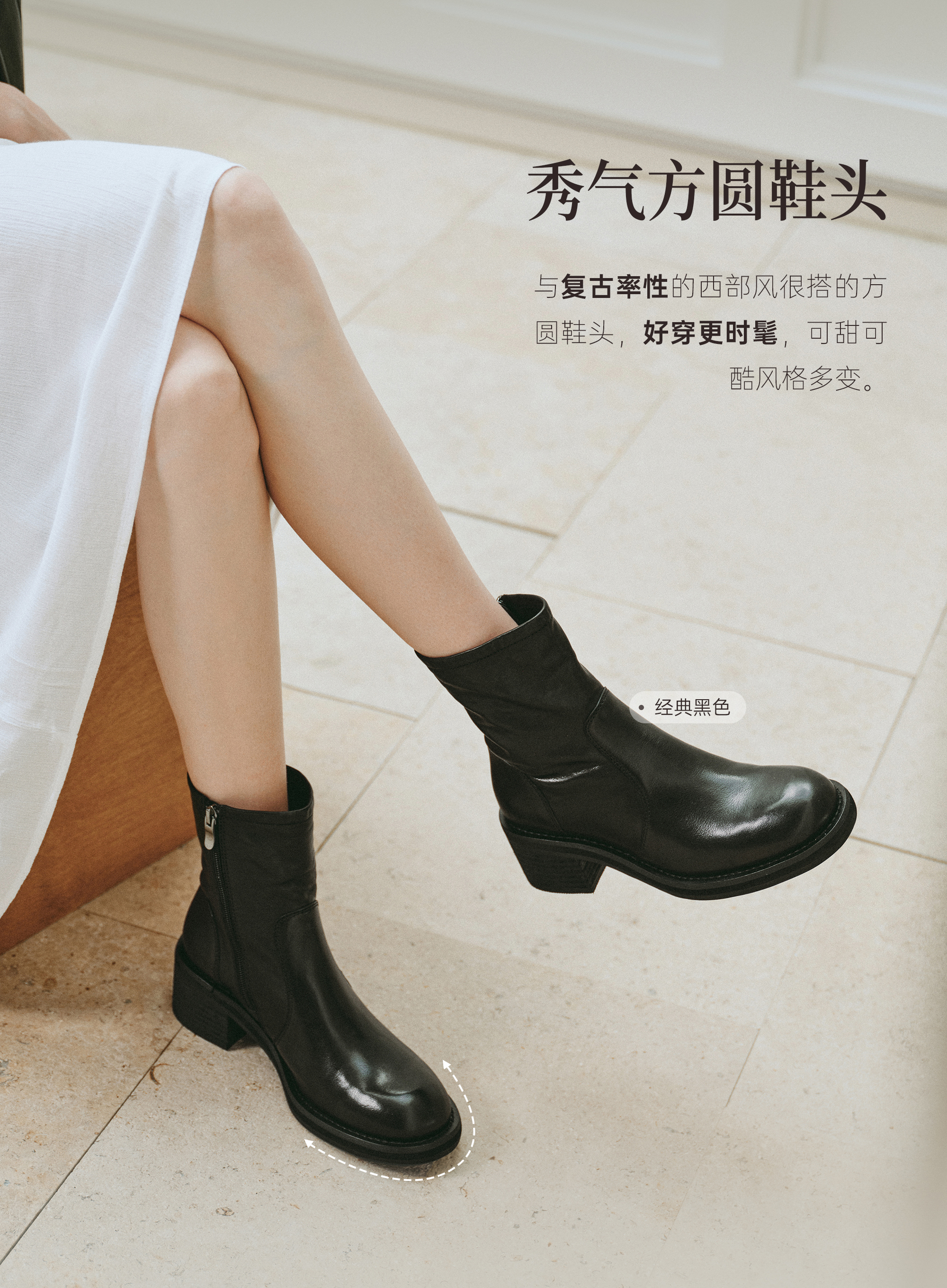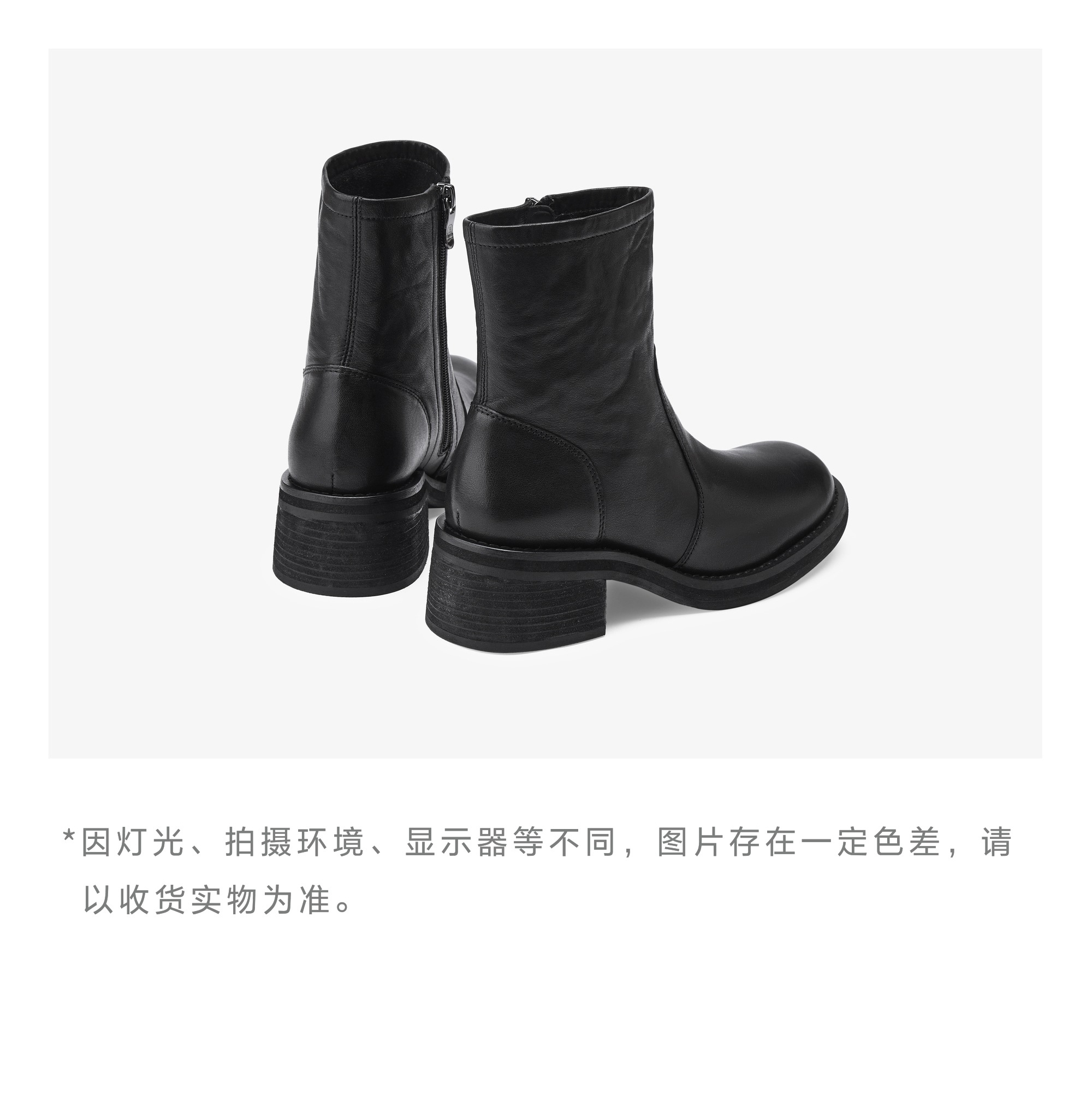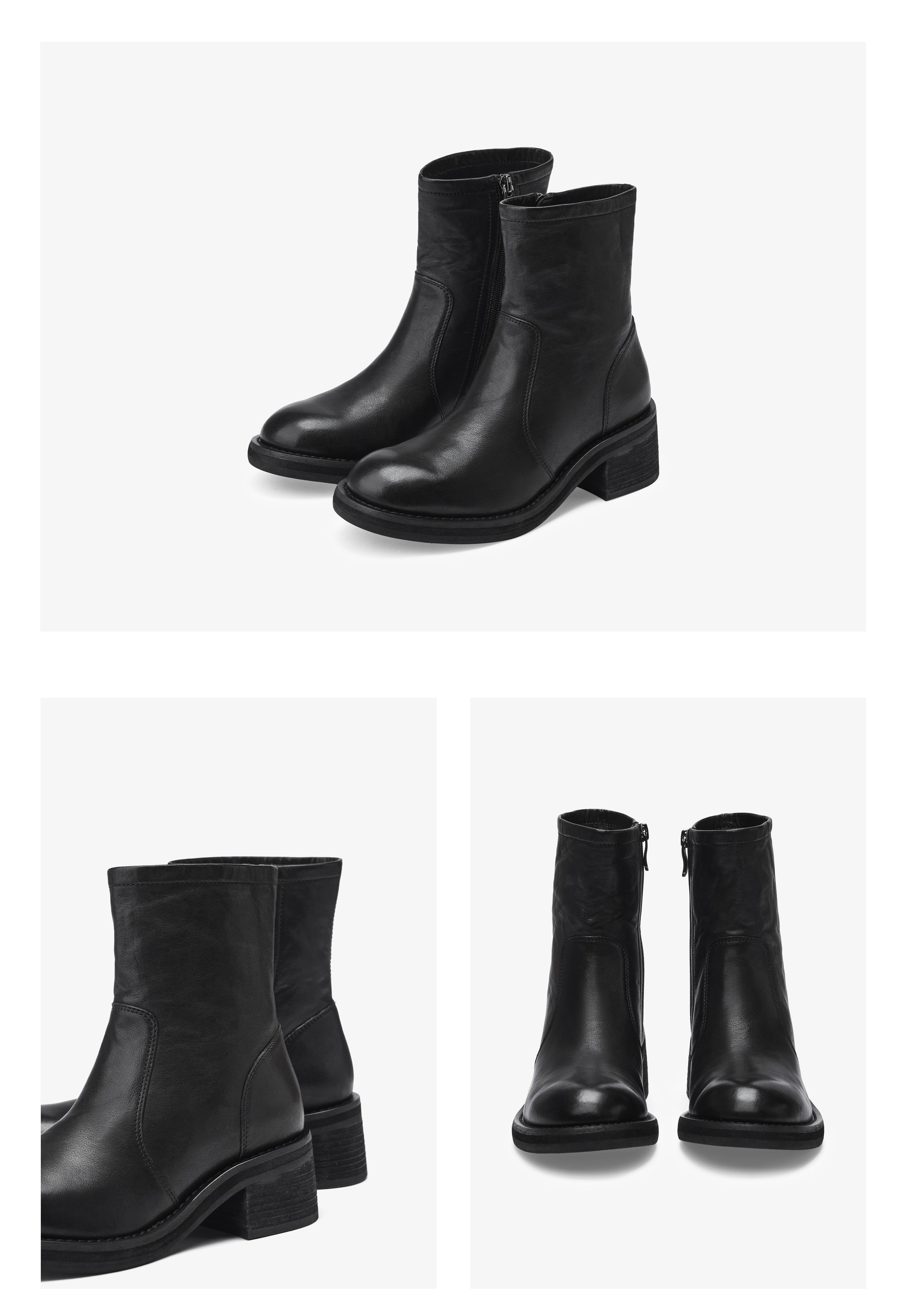 | 鞋底材质:橡胶底 | 靴筒内里材质:猪皮革 | 内增高:无 | 鞋面材质:牛皮革 | 闭合方式:侧拉链 |