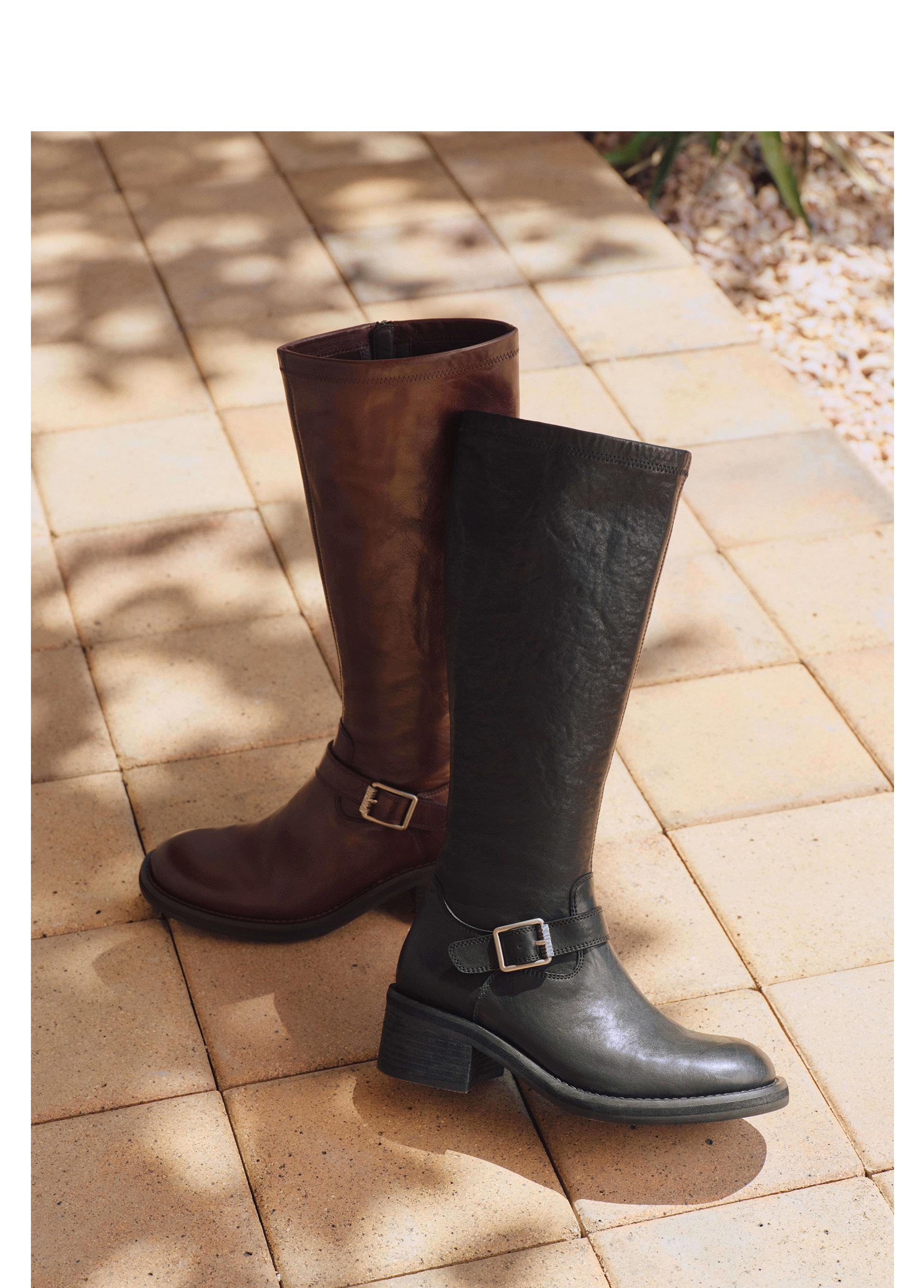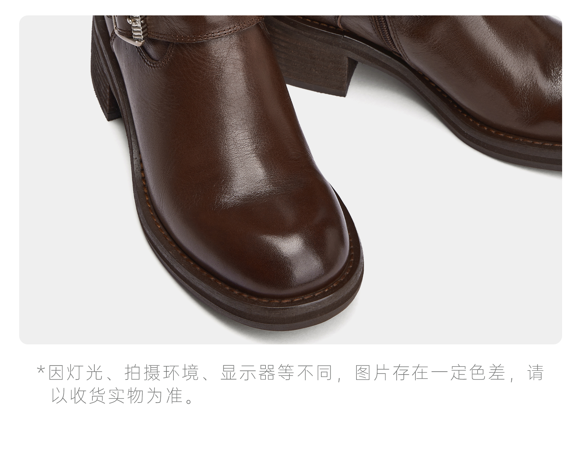 | 风格:休闲 | 鞋面内里材质:猪皮革 | 色系:咖啡色 | 跟高数值:4CM | 筒高数值:39CM |