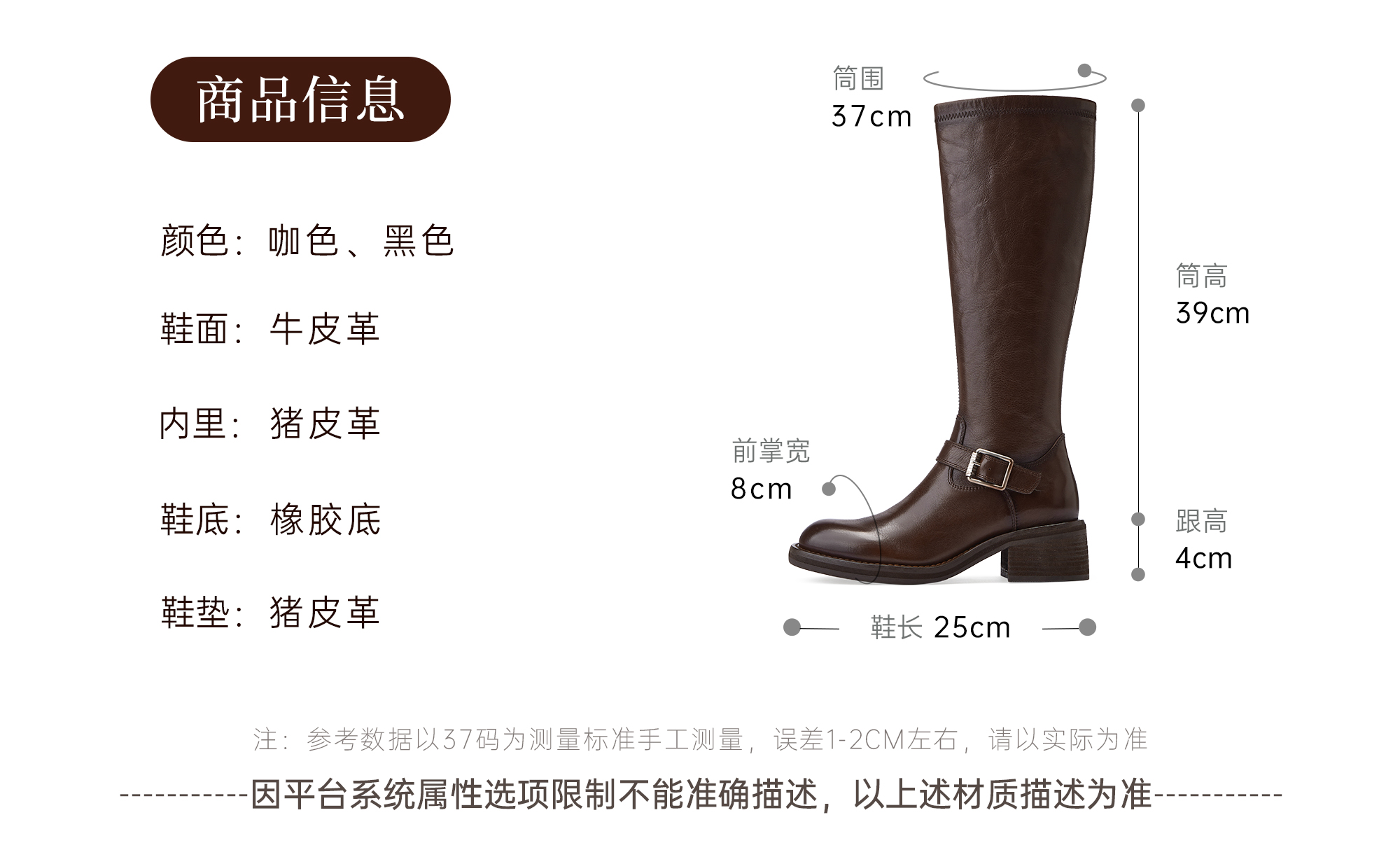 | 配跟:无 | 靴筒口围:37CM | 上市时间:2025年冬季 | 鞋类流行款式:骑士靴 | 鞋头款式:圆头 |