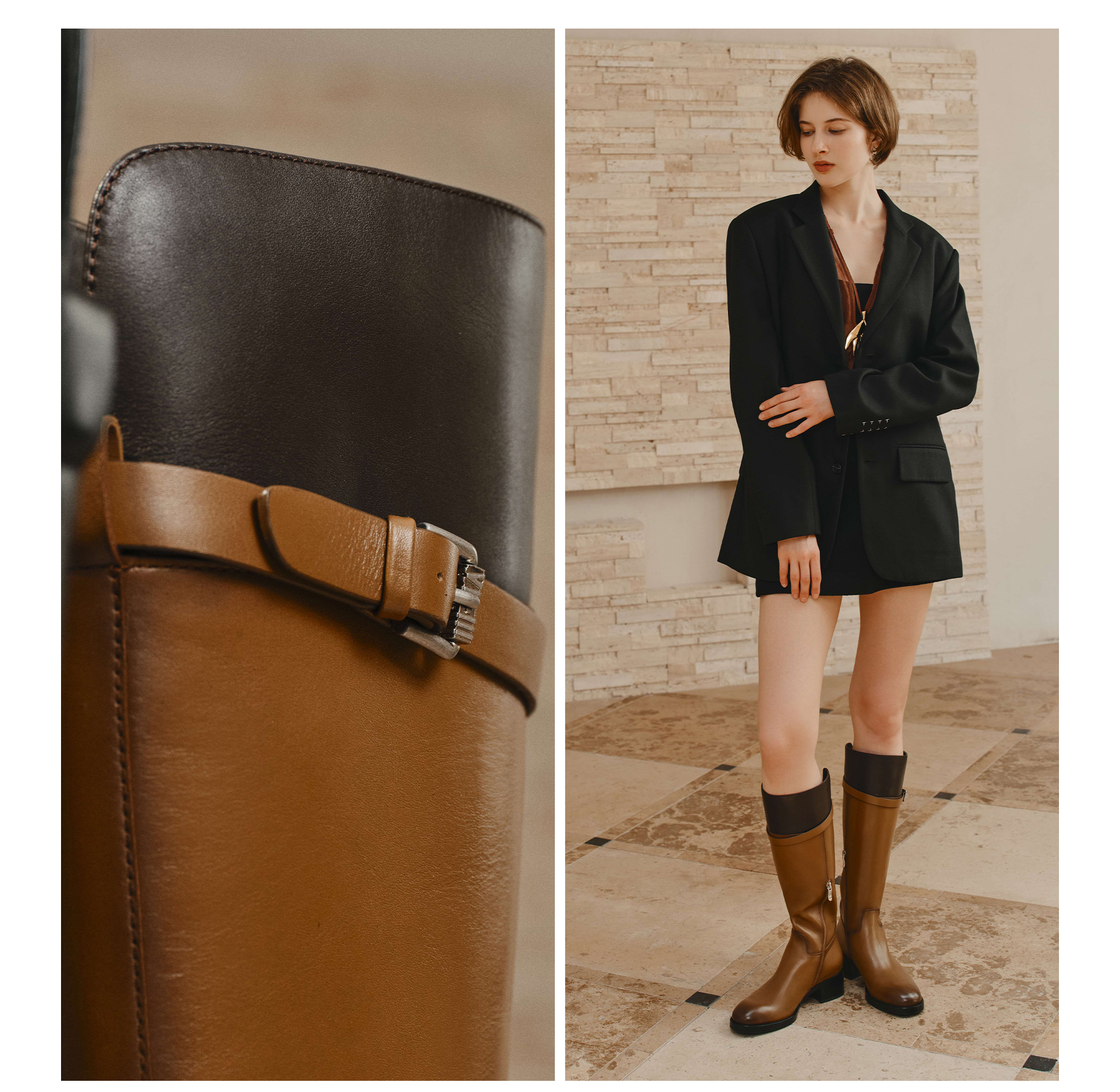 | 风格:休闲 | 鞋面内里材质:猪皮革 | 色系:棕色 | 跟高数值:4CM | 筒高数值:39CM |