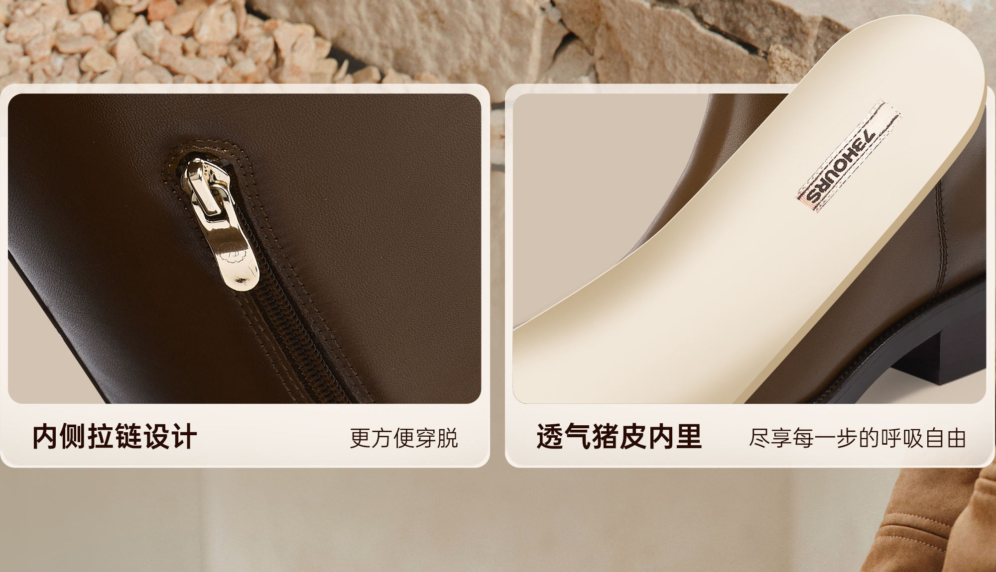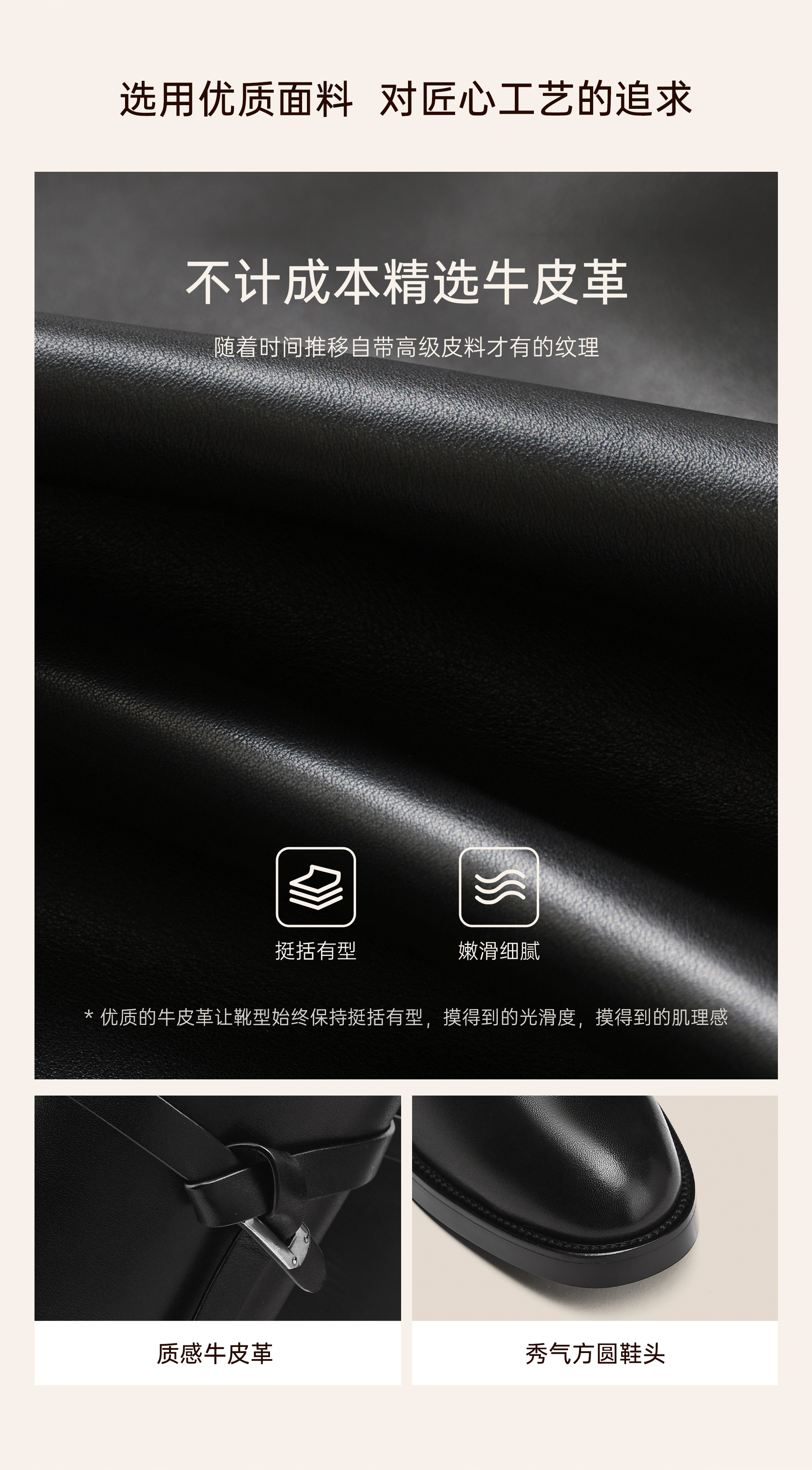 | 鞋底材质:橡胶底 | 靴筒内里材质:猪皮革 | 内增高:无 | 鞋面材质:牛皮革 | 闭合方式:侧拉链 |