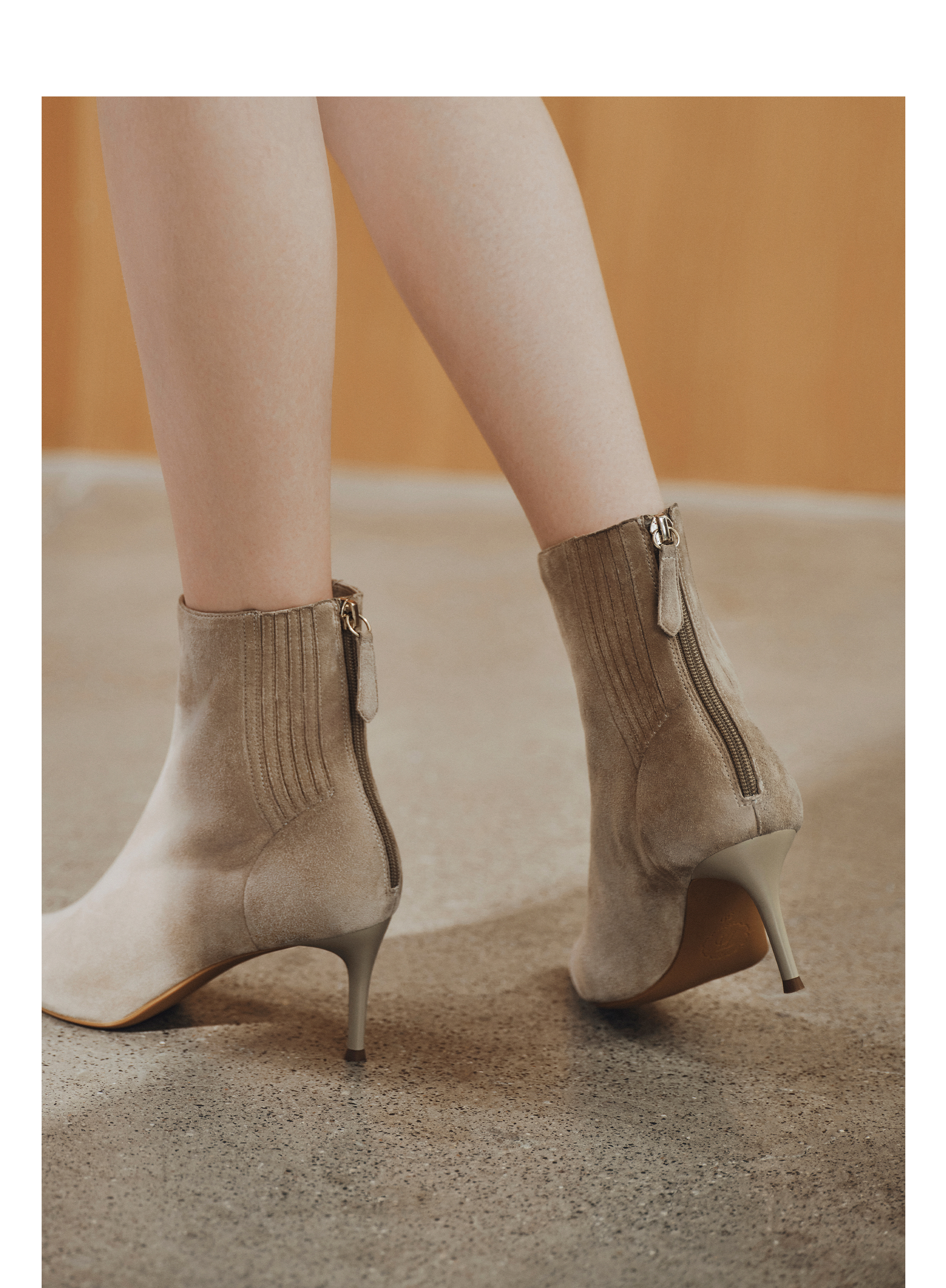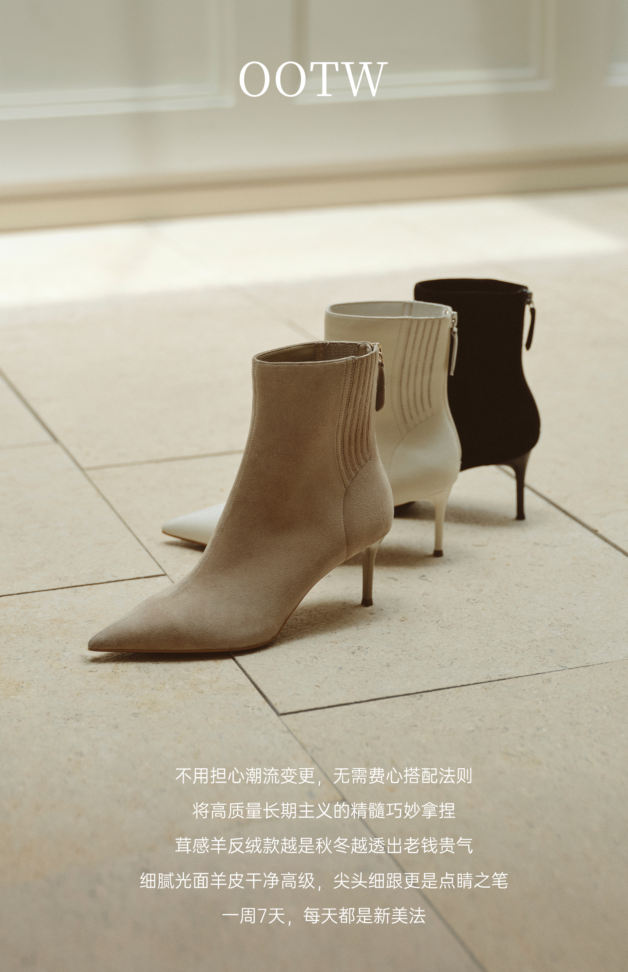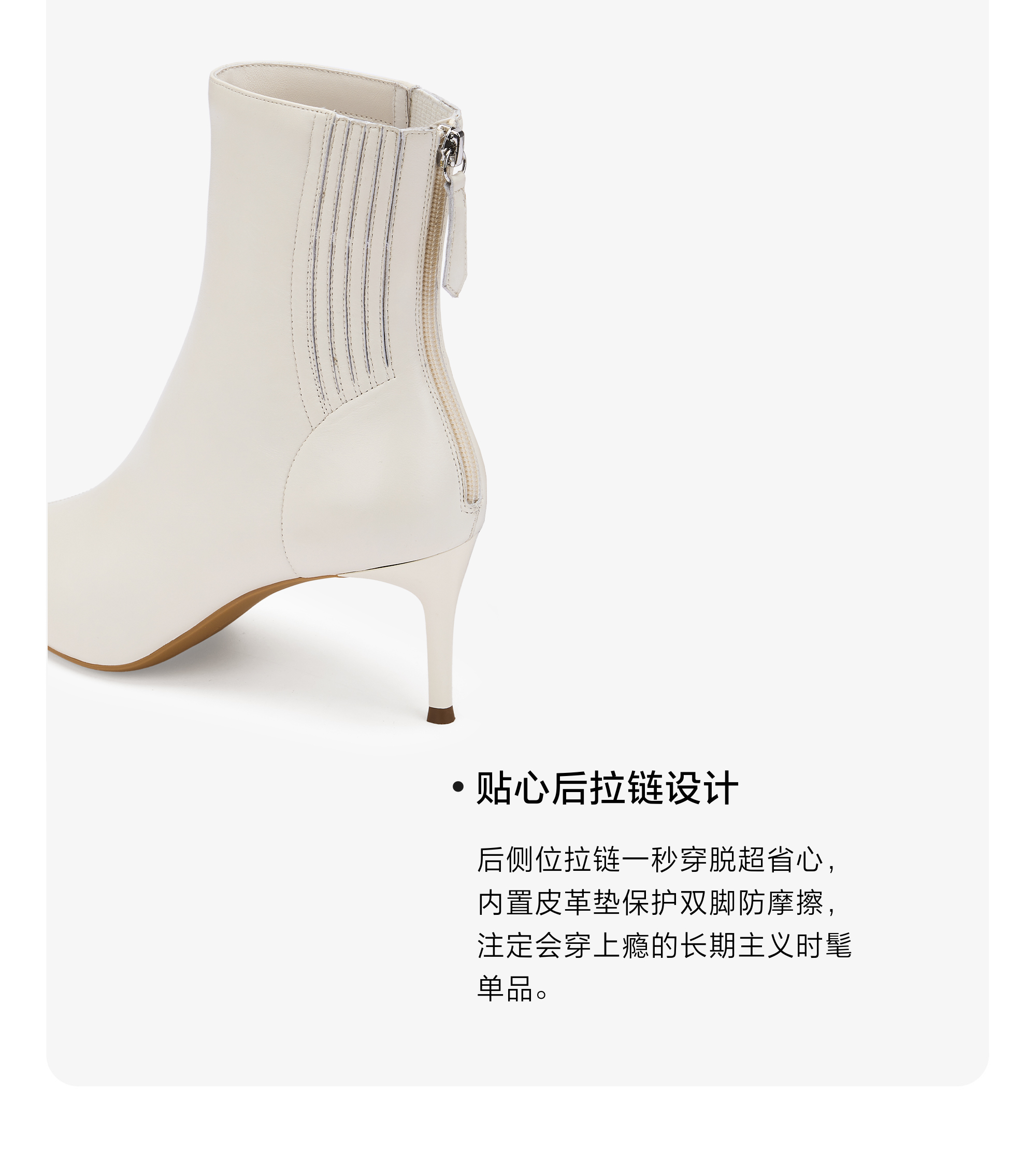 | 鞋底材质:橡胶底 | 靴筒内里材质:猪皮革 | 内增高:无 | 鞋面材质:羊皮革 | 闭合方式:后拉链 |