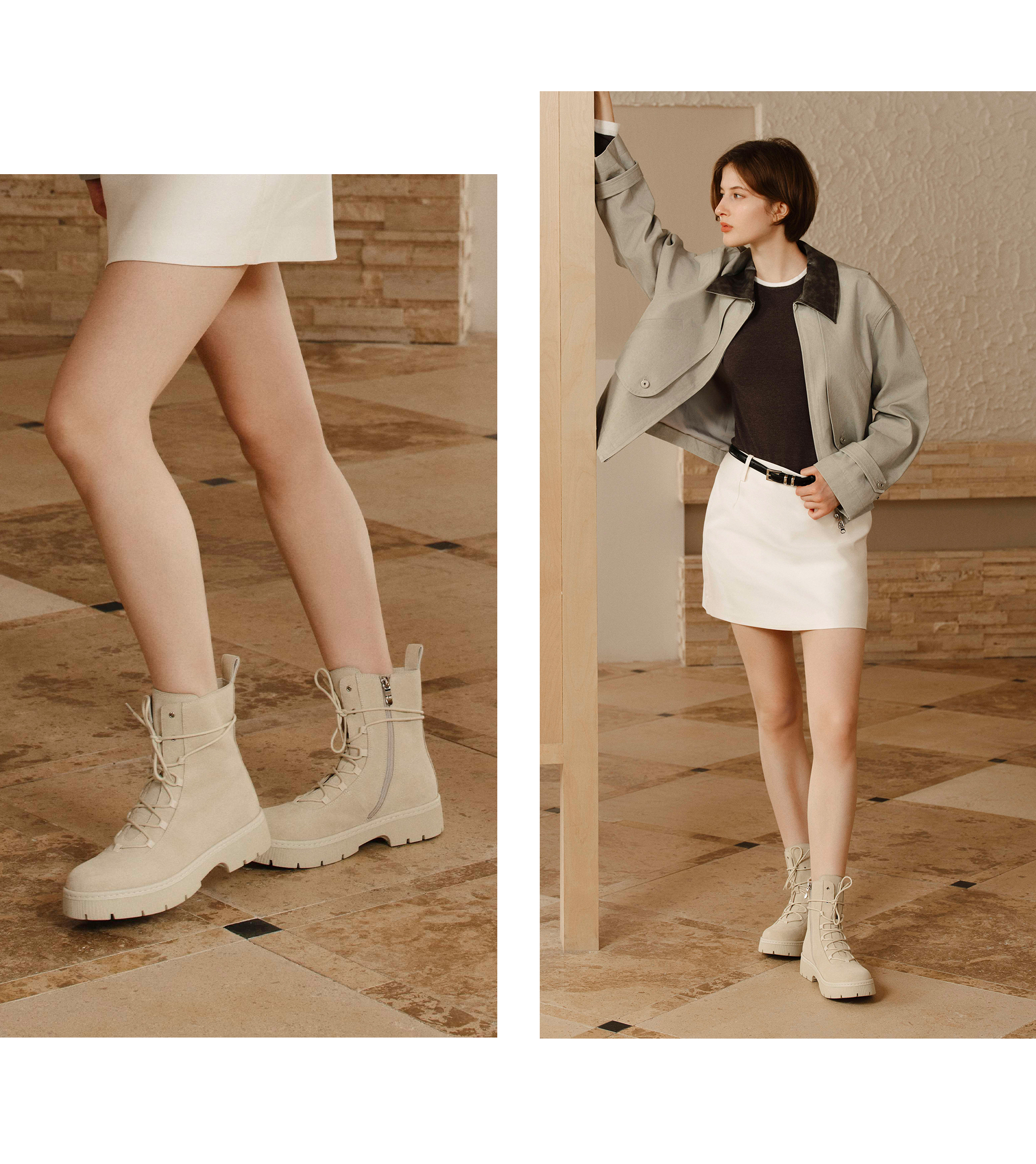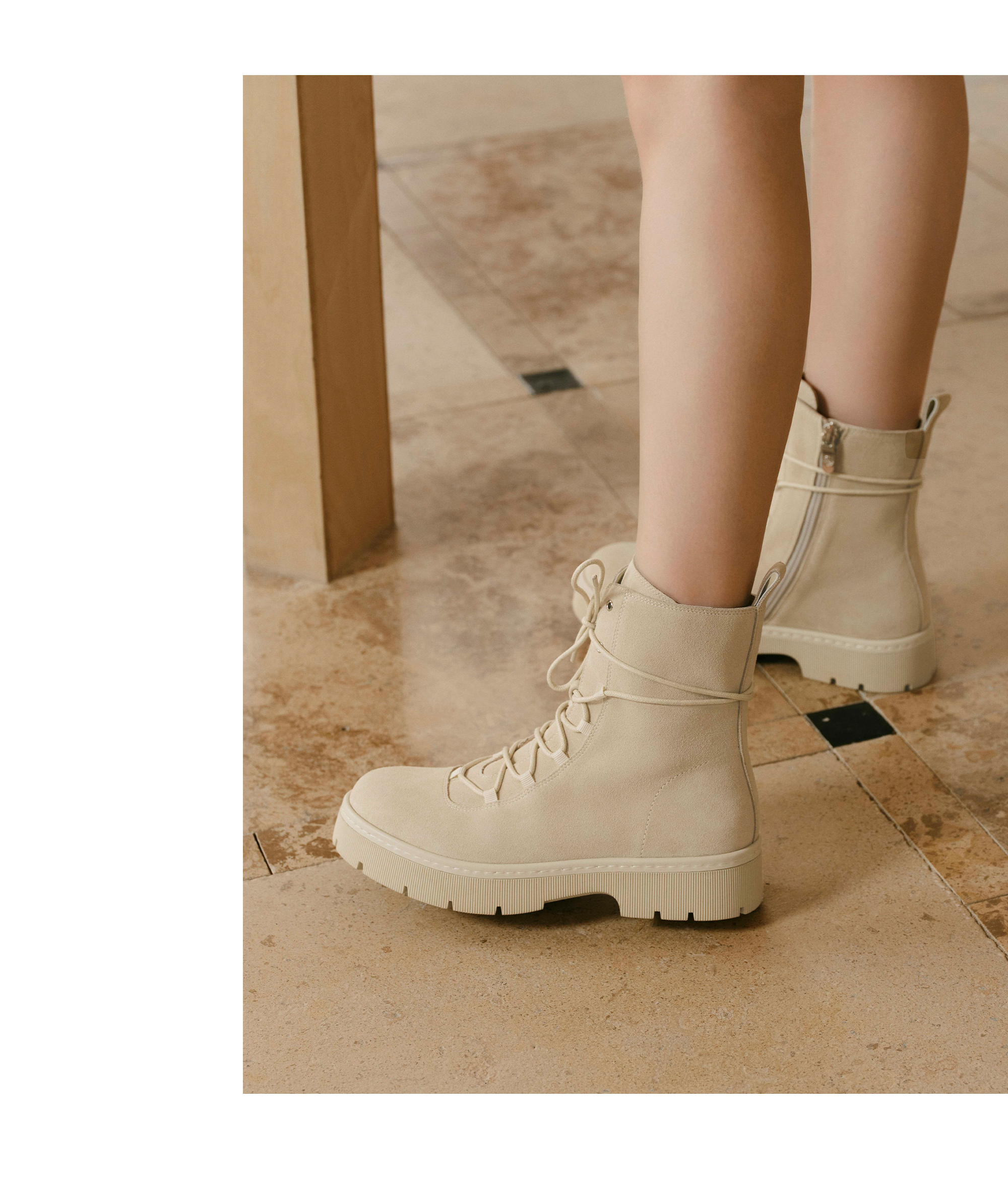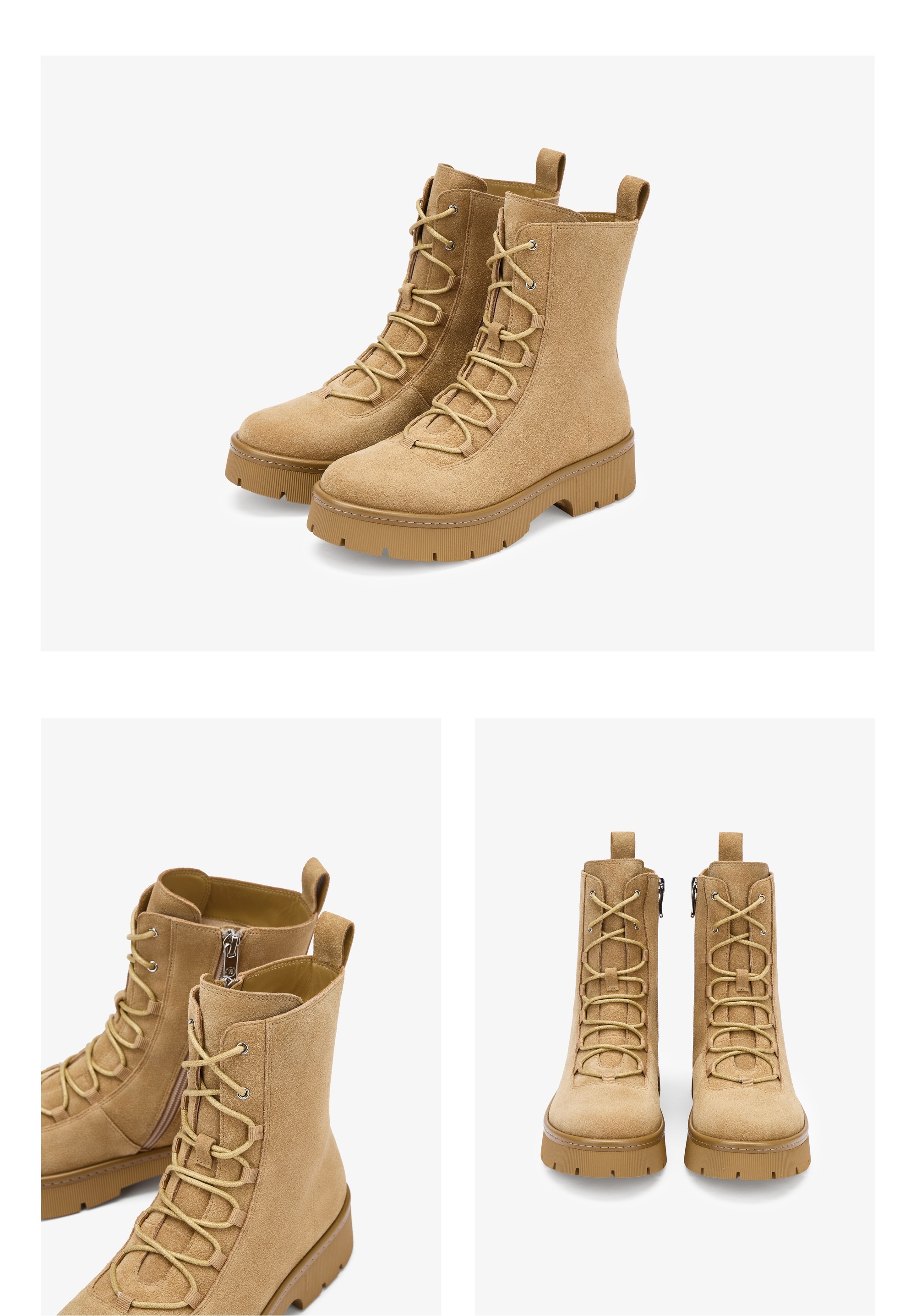 | 鞋底材质:TR | 靴筒内里材质:猪皮革 | 内增高:无 | 鞋面材质:牛剖层革 | 闭合方式:系带 |