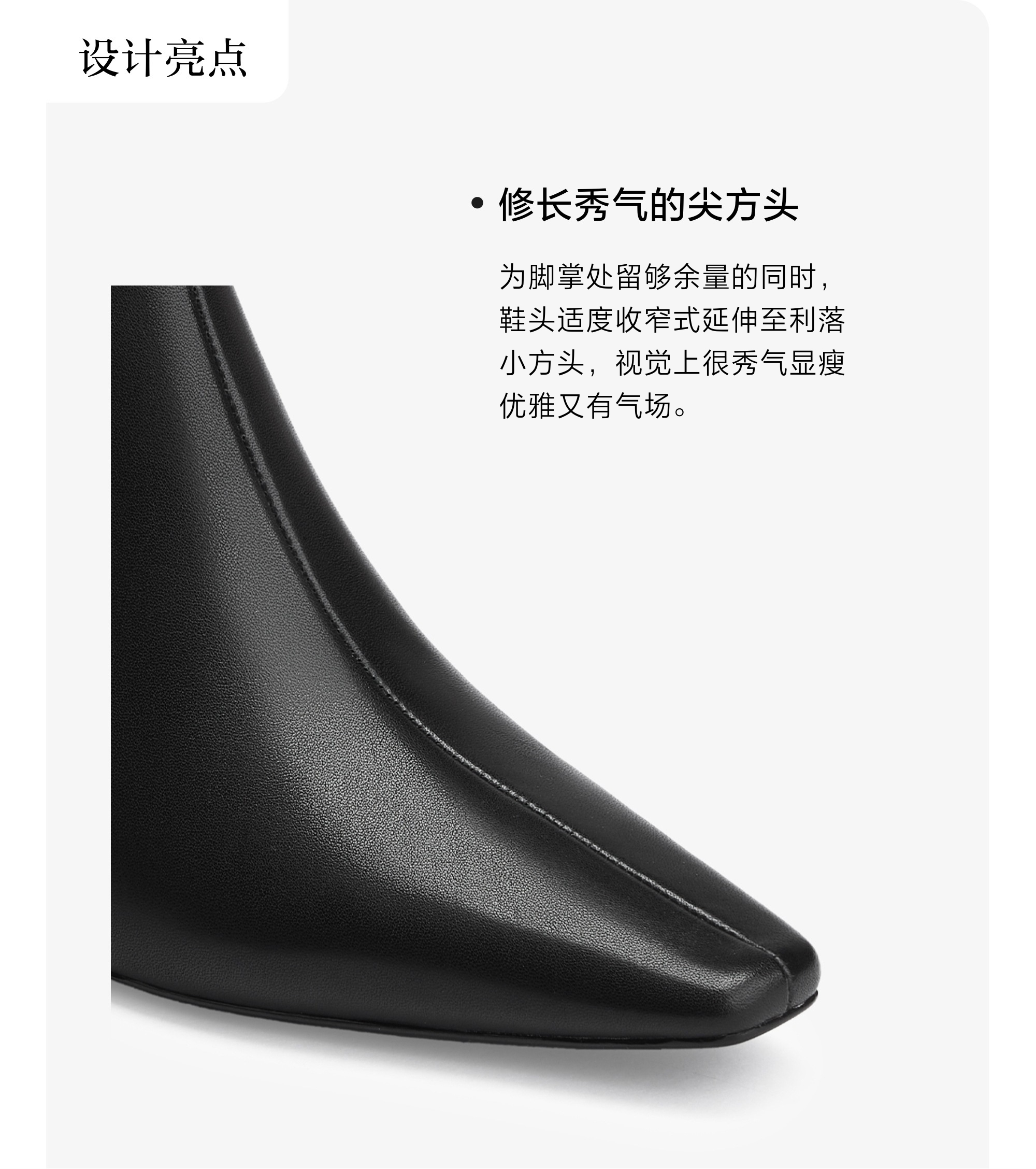 | 鞋底材质:TPU | 靴筒内里材质:猪皮革 | 内增高:无 | 鞋面材质:牛皮革 | 闭合方式:套筒 |